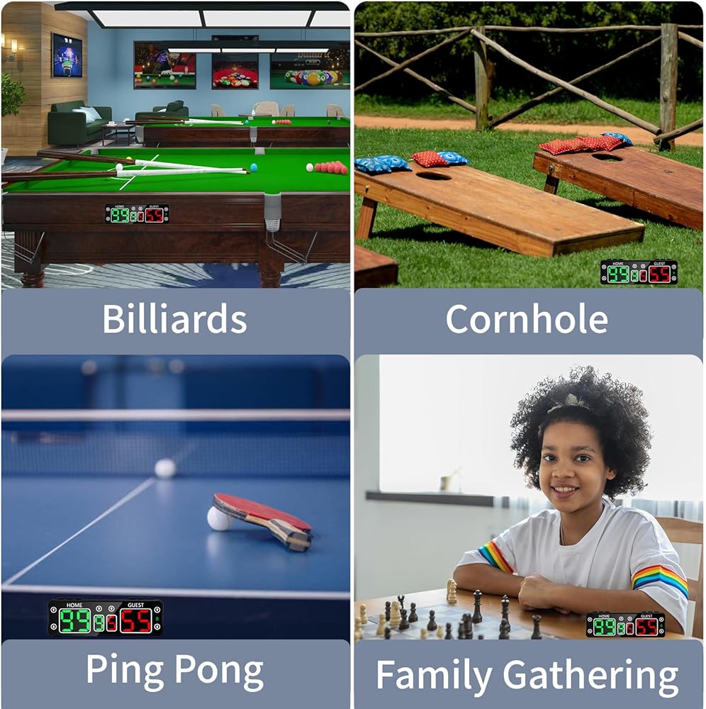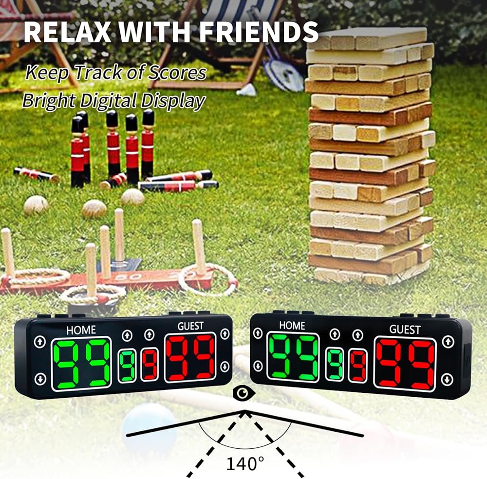 الرفيق المثالي للعبة: تتميز لوحة النتائج التي تعمل ببطارية GANXIN بشاشة عرض ساطعة عالية الجودة رقمية مقاس 1.8 بوصة تضمن رؤية ممتازة وسهولة القراءة من أي زاوية في حدود 50 قدمًا. ساطعة بما يكفي لرؤية النهار والليل أثناء اللعب. لا توجد حجة، مثالية لثقب الذرة، وطاولة كرة القدم، والهوكي الهوائي، والشوفلبورد، والكرة الطائرة، والفصول الدراسية، وألعاب الفناء الخارجية غير الرسمية، والمزيد.