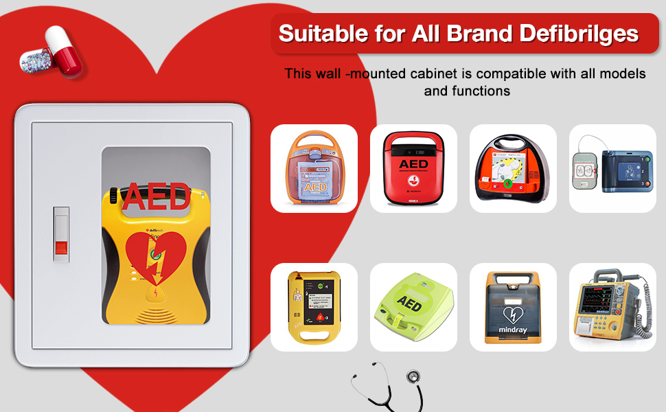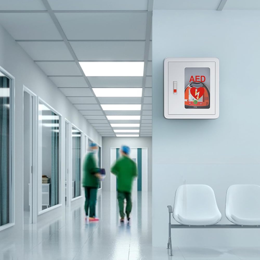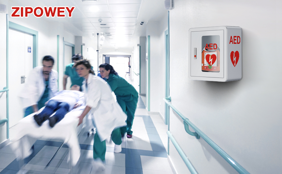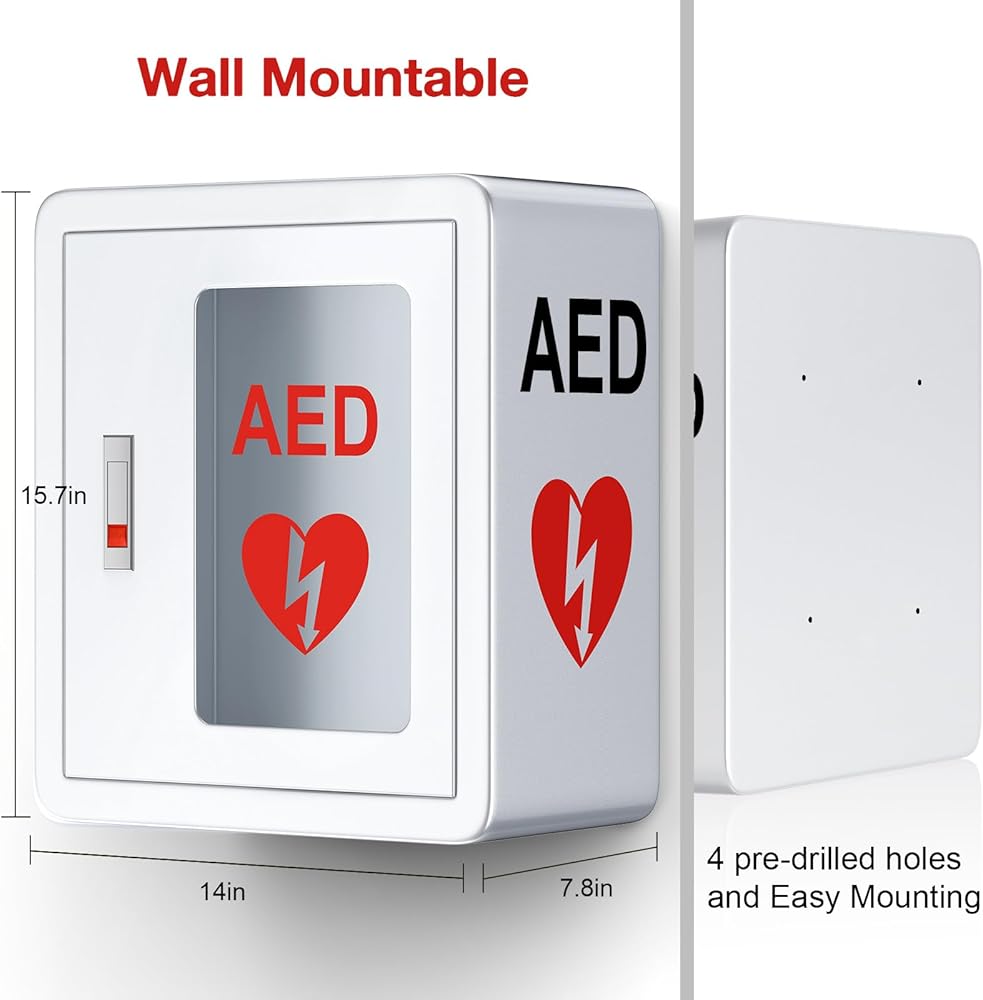 خزانة AED، قفل سريع من الفولاذ المقاوم للصدأ ZIPOWEY، خزانة تخزين مثبتة على الحائط ومزيل رجفان الإسعافات الأولية، تناسب جميع العلامات التجارية لعلوم القلب في الأماكن العامة، 14 × 7.8 × 15.7 بوصة