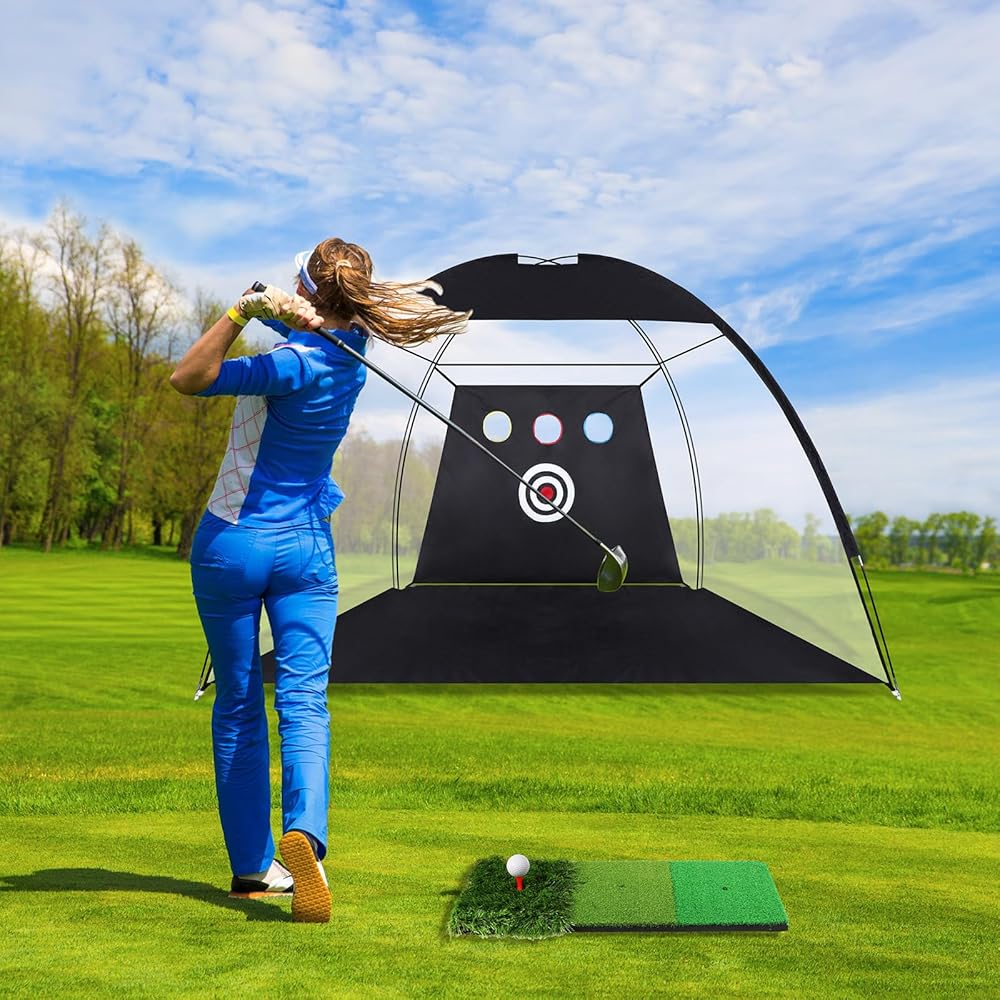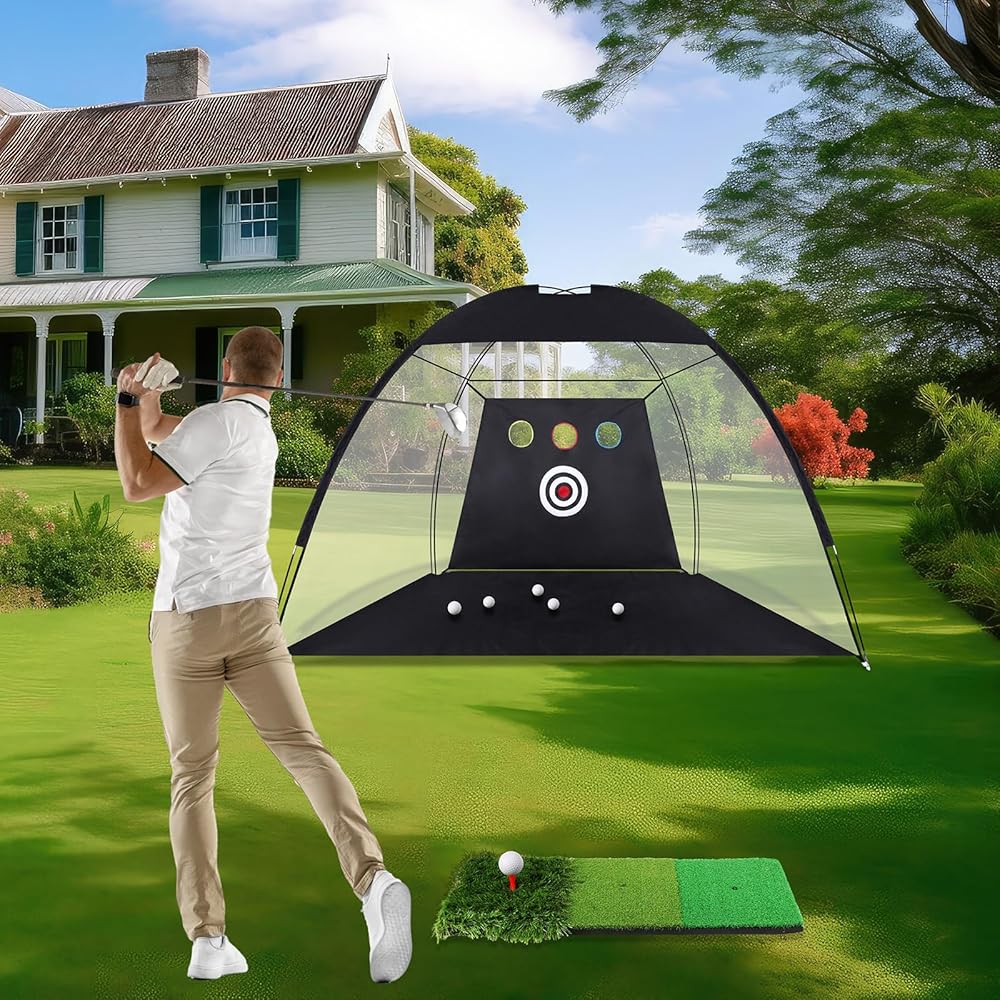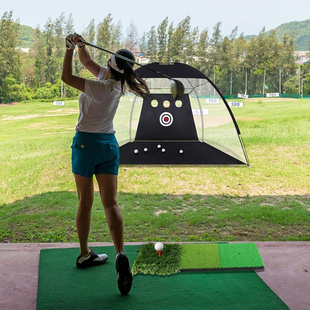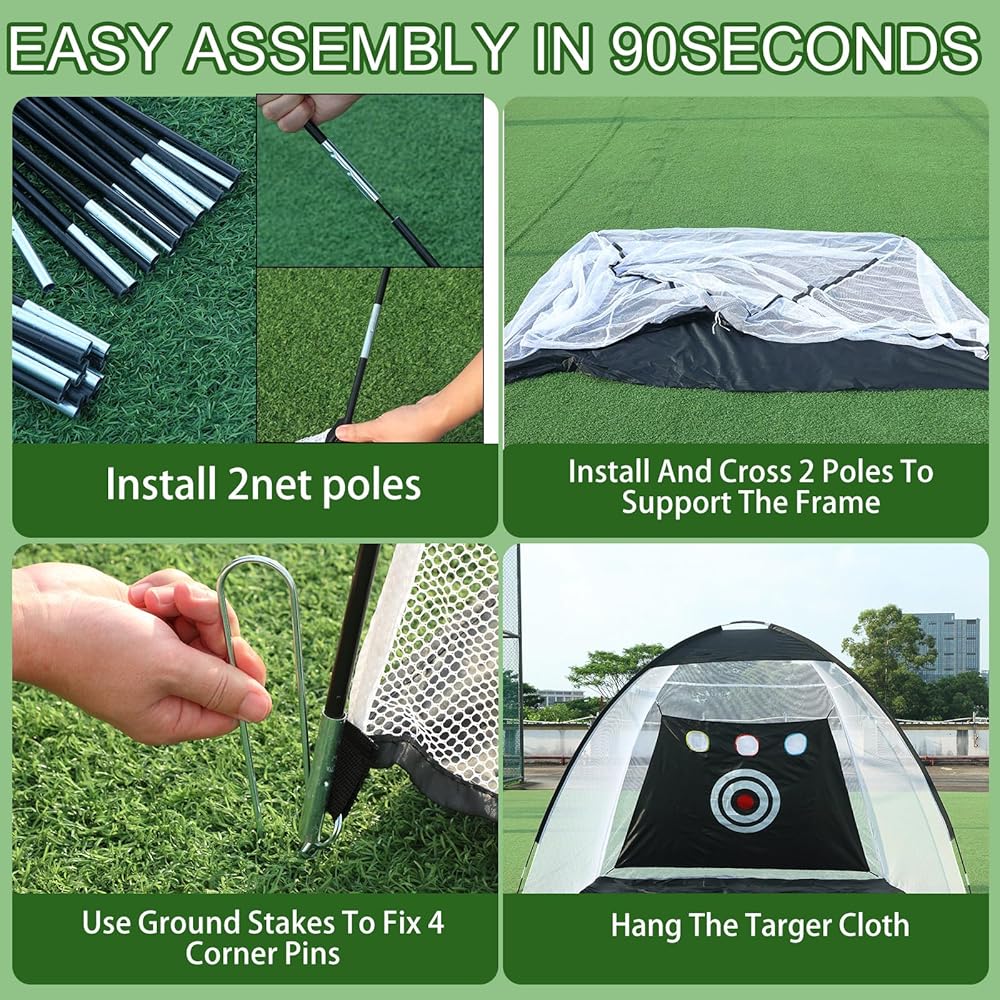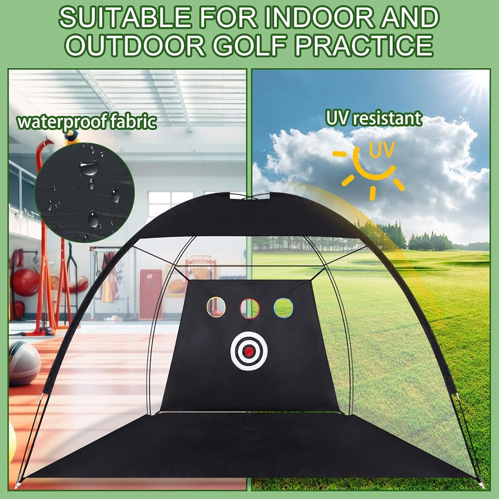 • Wide Application: our golf nets for backyard driving real golf balls is suitable for all ages; No site and time limitations for golf practice anymore; Golf nets for backyard are suitable for practicing your golfing skills in indoor or courtyard garden, the wide range of use make it a nice choice for golfers, while providing a professional level practice environment at home