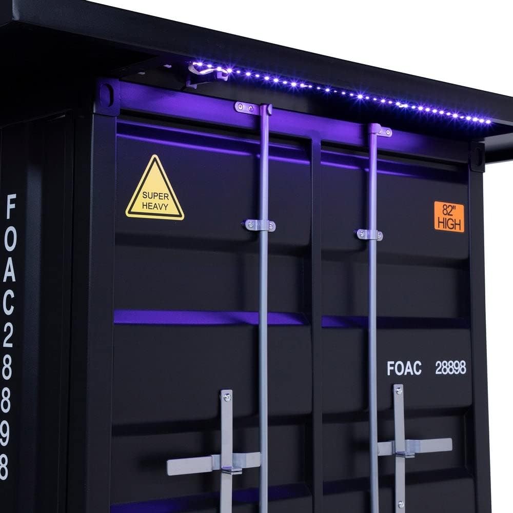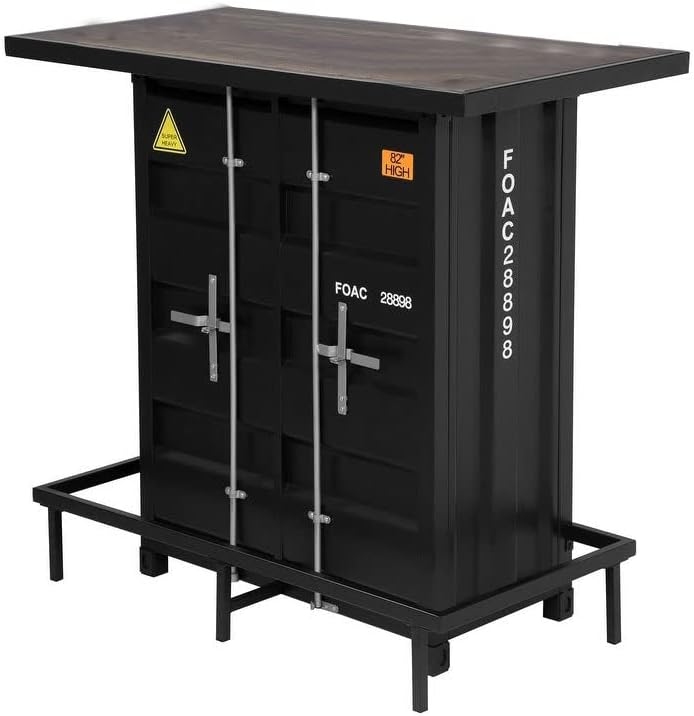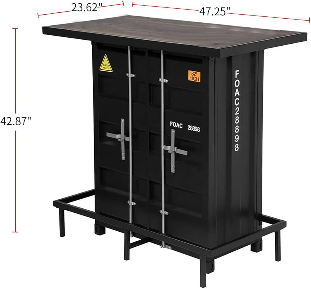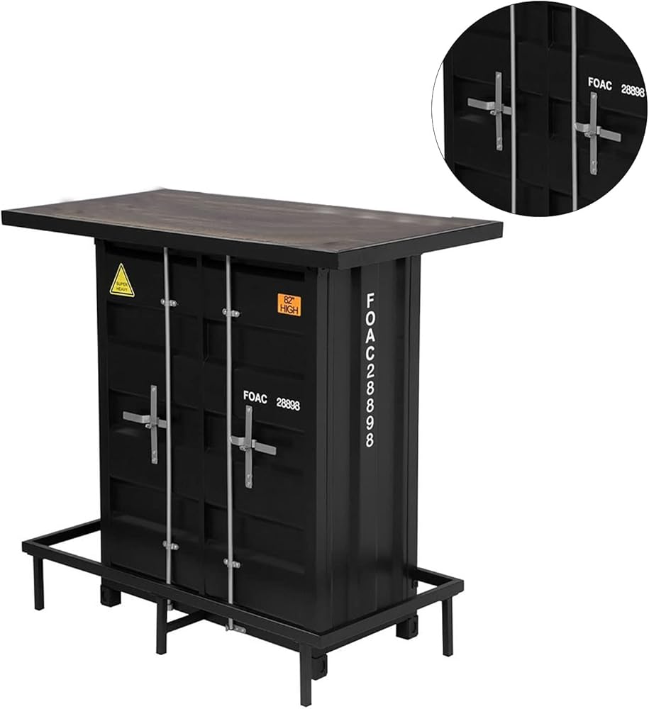 This uniquely designed bar height table is fully functional and has a unique decorative function. This industrial-style table is designed according to ship cargo-inspired, with two layers of open partitions on the back and hanging wine glass holders inside. If you happen to need a uniquely designed bar height table, I think it will be very suitable for you.