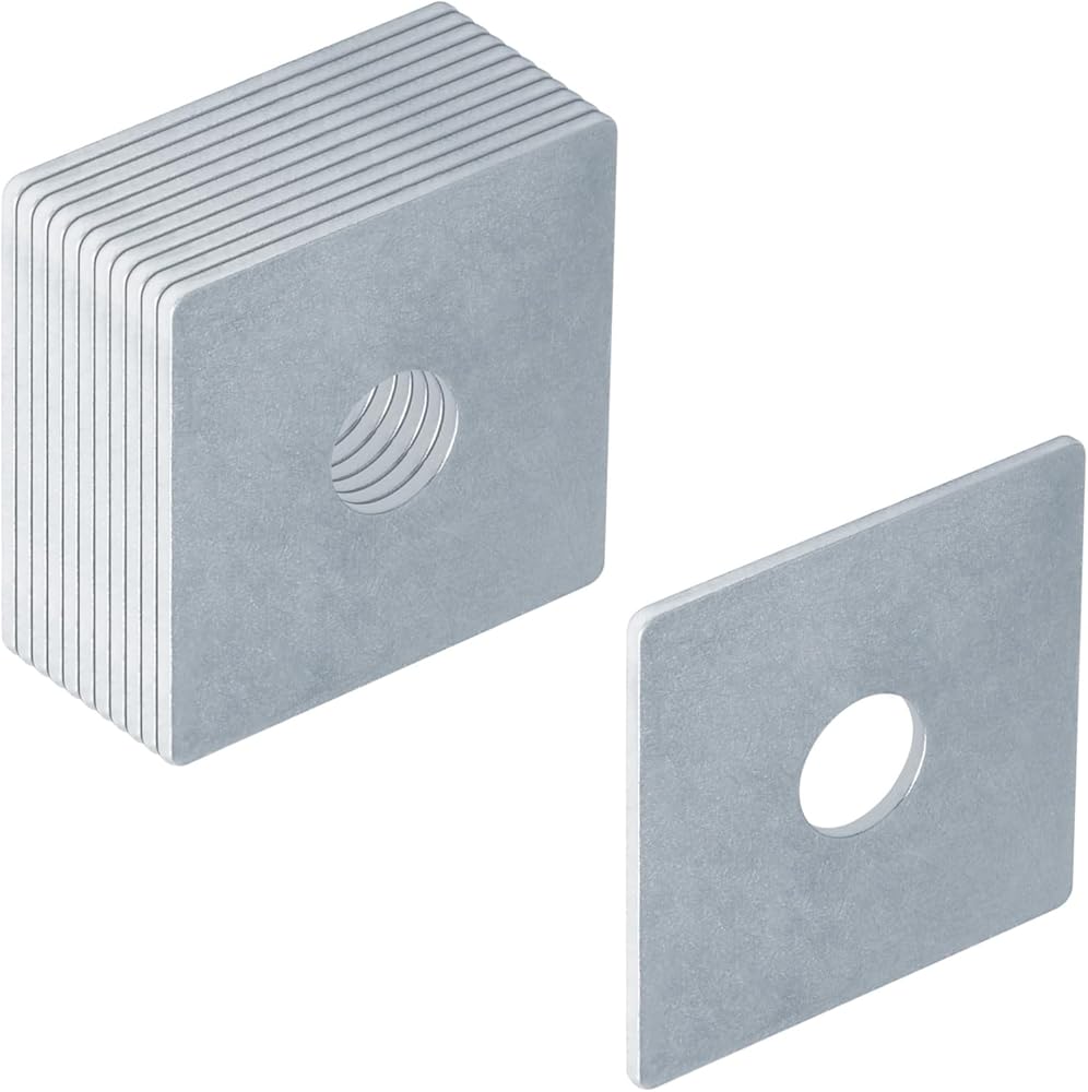 • 12 قطعة من ألواح الغسالات المربعة، المادة: فولاذ منخفض الكربون، اللمسة النهائية: مجلفن كهربائيًا.