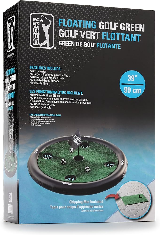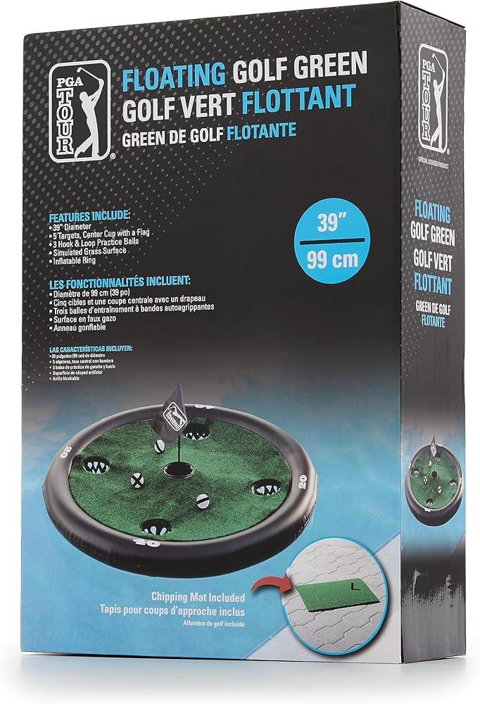 Transform a pool or pond into a chipping station. This pool chipping float adds an extra element of fun to your practice. Chipping Float includes floating synthetic green, chipping mat, 3 velcro practice golf balls and a flag.