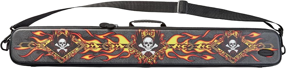 حافظة Parallax Sinister Billiard/Pool Cue Case 600D Oxford نسيج بوليستر ثقيل الوزن وبطانة داخلية، تحمل قطعة واحدة كاملة من قطعتين (1 مؤخرة/1 عمود)، شريرة