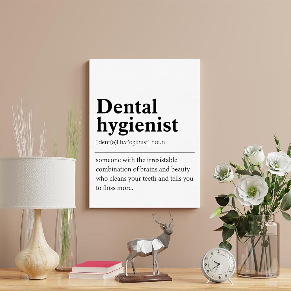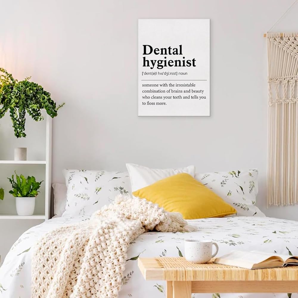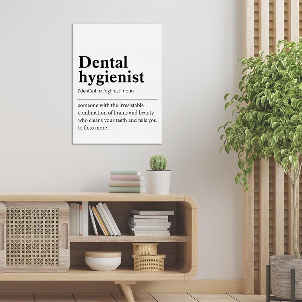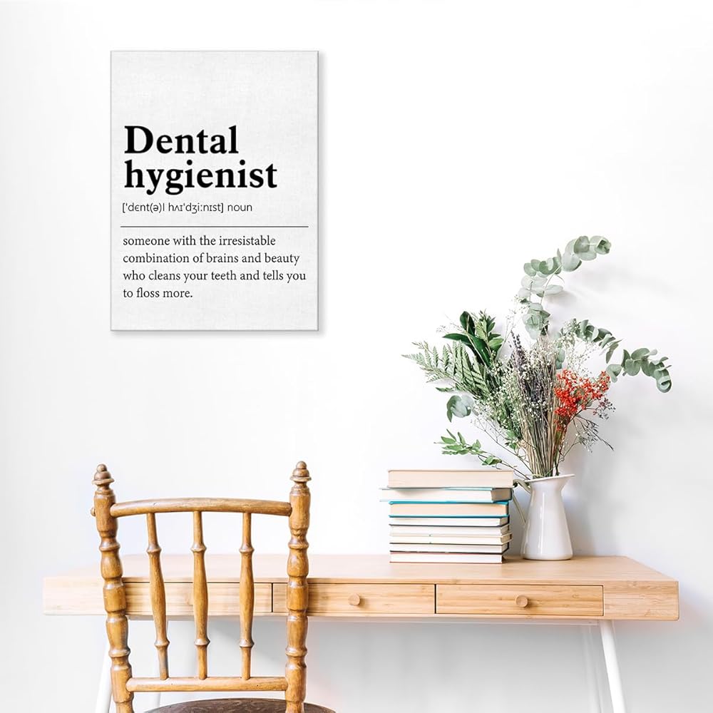 ملصق جداري فني لأخصائي صحة الأسنان، ملصق تعريفي لأخصائي صحة الأسنان، لوحة مؤطرة مطبوعة على القماش لديكور المنزل والمكتب والعيادة 12 × 15 بوصة