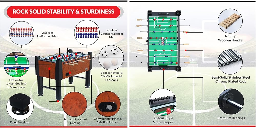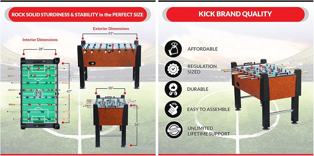- ⚽️ أبعاد الطاولة: 55 بوصة طول × 30 بوصة عرض × 36 بوصة ارتفاع ✅