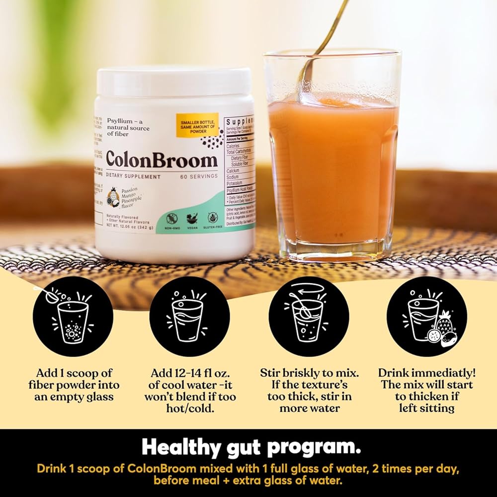 تعزيز الألياف اللذيذ - مشروب مكنسة القولون بنكهة فاكهة العاطفة المنعشة والمانجو والأناناس الذي يجعلك تشعر بخفة من الداخل. امزج ملعقة واحدة من مسحوق السيلليوم مع 12-14 أونصة سائلة من الماء - رجها جيدًا واشربها على الفور. إذا تم تركه، فسيصبح الملمس سميكًا جدًا.