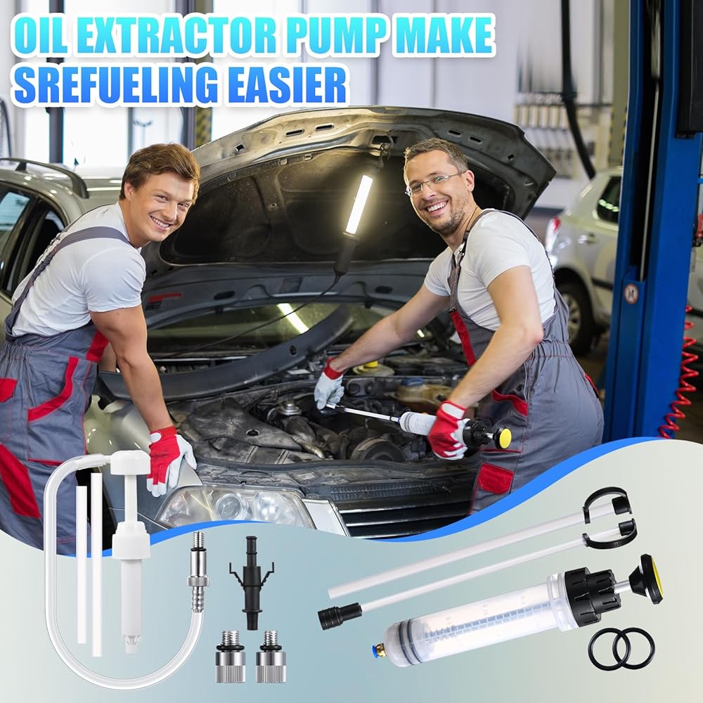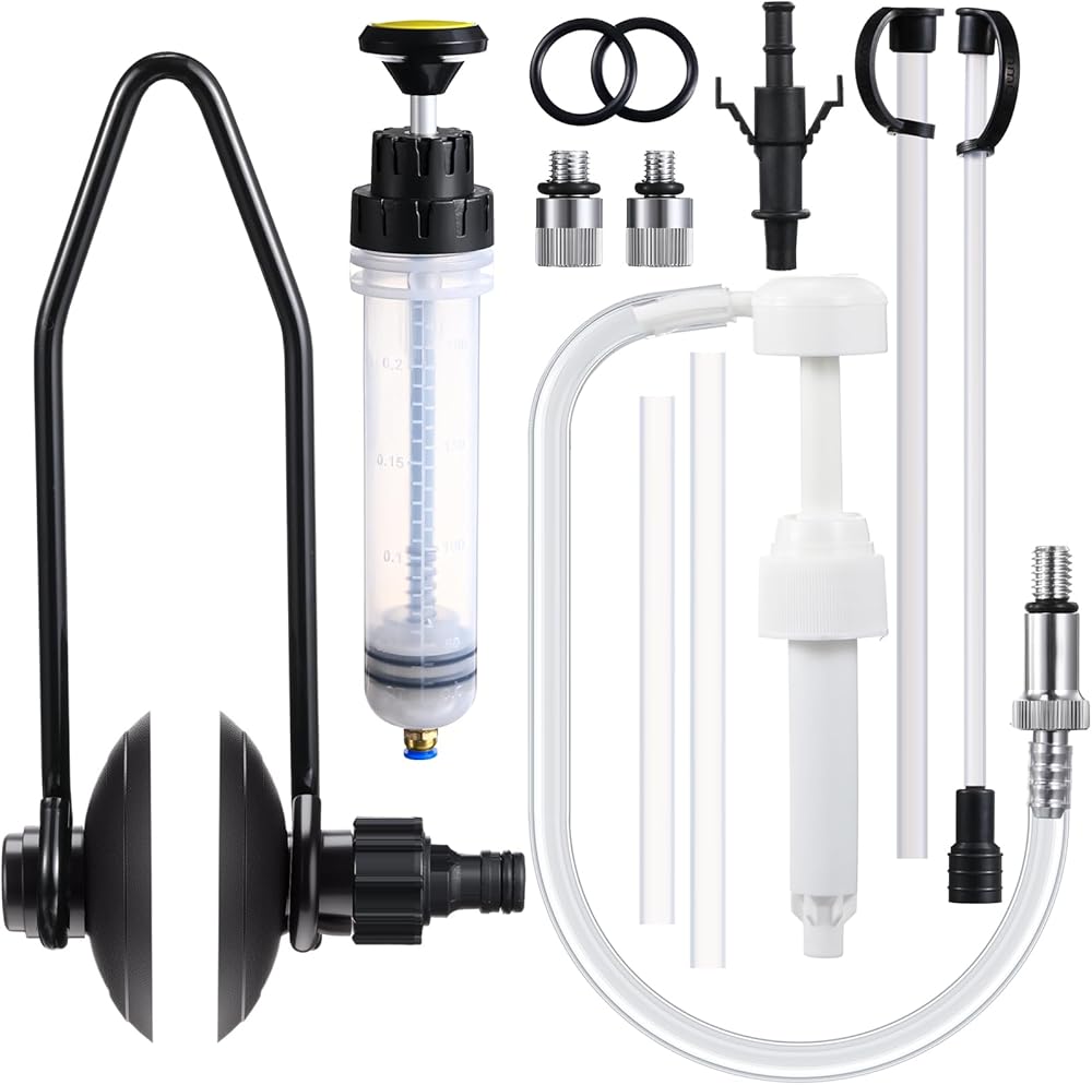 Oil Extractor Pump: the oil change syringe with hose has a 200cc capacity for accurate level monitoring, it comes with 1/4" OD and 3/8" OD extension tubes with end caps, which can be up to 15.75 inches/ 40 cm long when connected, enough to reach to the bottom; You can use it to extract and replace transmission oil, power steering fluid, brake fluid and more