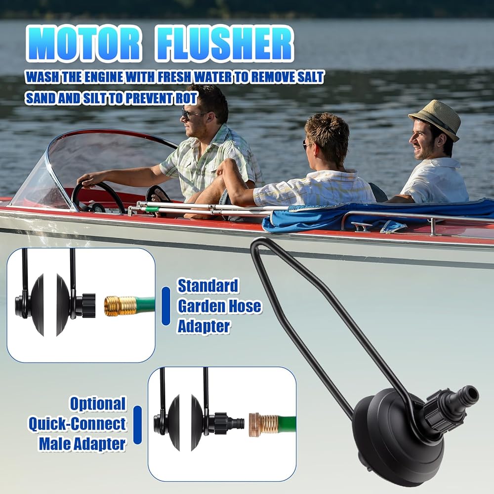 Outboard Motor Water Flusher: the boat ear muff engine flusher has a convenient hose connector for easy rinsing, you can easily connect to a standard garden hose to wash away engine dirt, keeping your motor clean; Made of quality steel frame with black coating for durability, not easy to deform