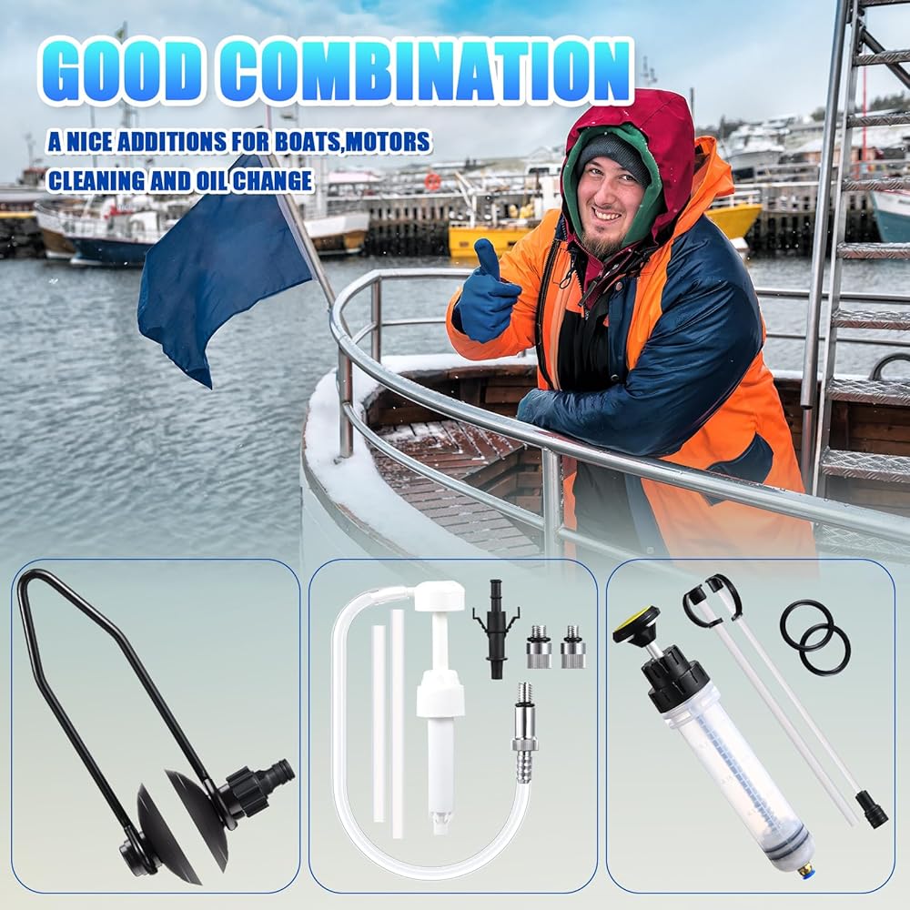 Good Combination: the package includes 1 black universal rectangular outboard motor water flusher, 1 set 8cc lower unit oil pump with hose, 1 set of 200cc automotive fluid extractor pump with locking adapter to meet your different cleaning requirements
