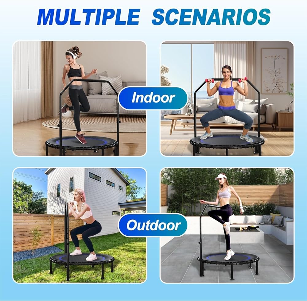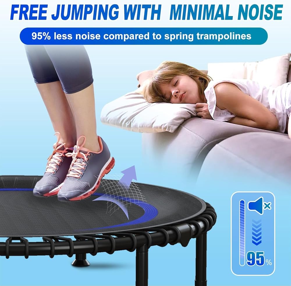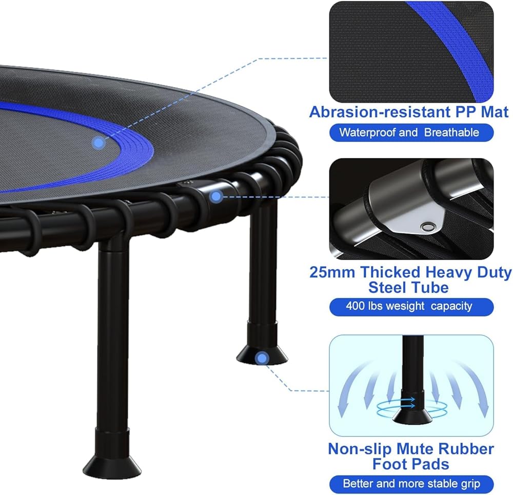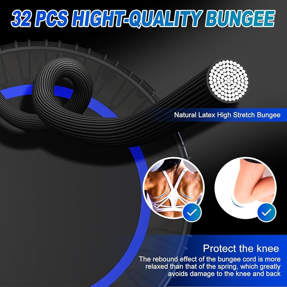 【نظام حبل بنجي للسلامة】 تم تجهيز الترامبولين الصغير مقاس 40 بوصة مع المقود بـ 32 قطعة من حبال بنجي متينة من اللاتكس الطبيعي والتي توفر تعليقًا صديقًا للمفاصل مما يوفر الثبات أثناء التمرين ويمنحك تجربة قفز رائعة.