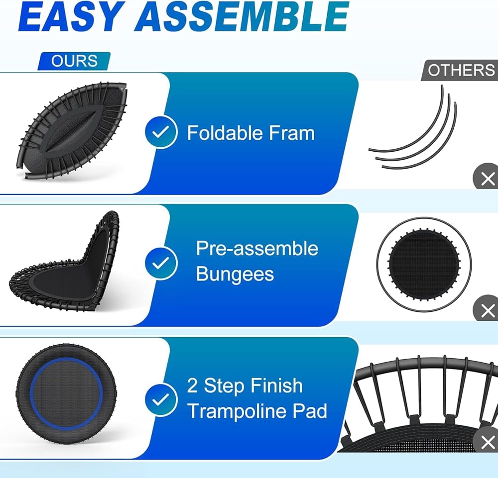 【مثبت مسبقًا】: تم تركيب 40% من ترامبولين YYJO للتمرين مسبقًا، ووضع تعليمات تركيب سهلة الاتباع، وأدوات تثبيت متخصصة للسماح لك بالتركيب بسرعة وأمان. استمتع بمتعة الترامبولين بسهولة!
