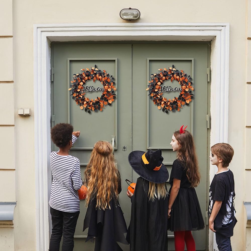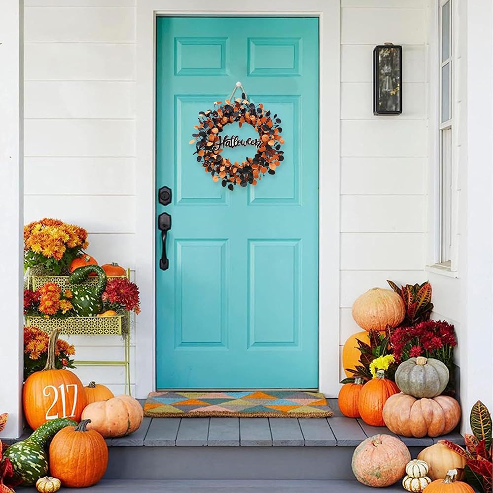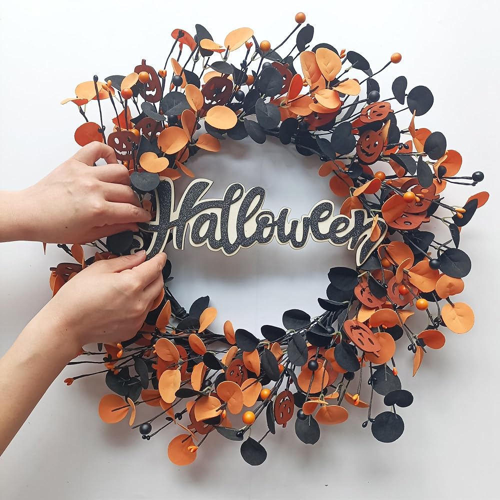 [هدية رائعة للعطلات]: هذا الإكليل النابض بالحياة والنابض بالحياة يمثل هدية ممتازة. جاذبيته ومتانته الخالدة تجعله خيارًا مثاليًا للأصدقاء والجيران الذين يتطلعون إلى إضافة لمسة من روح الهالوين إلى منازلهم.