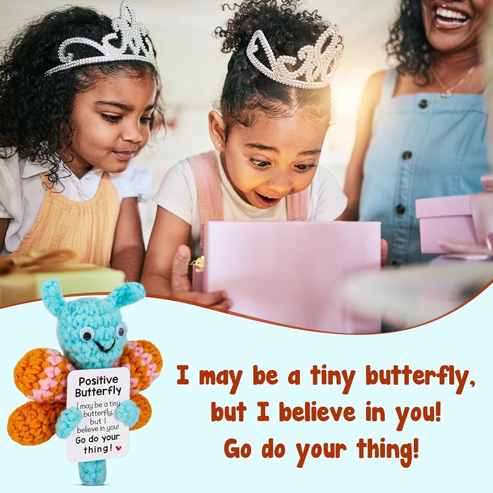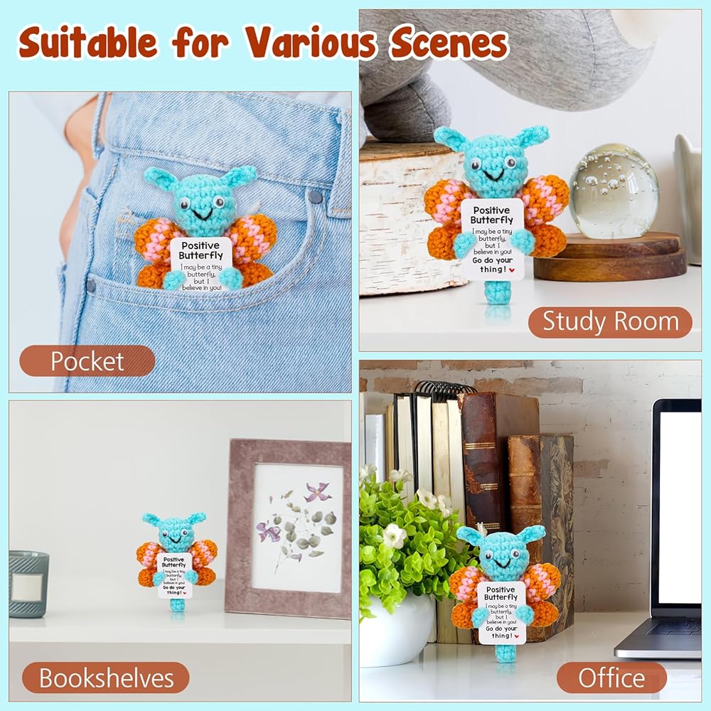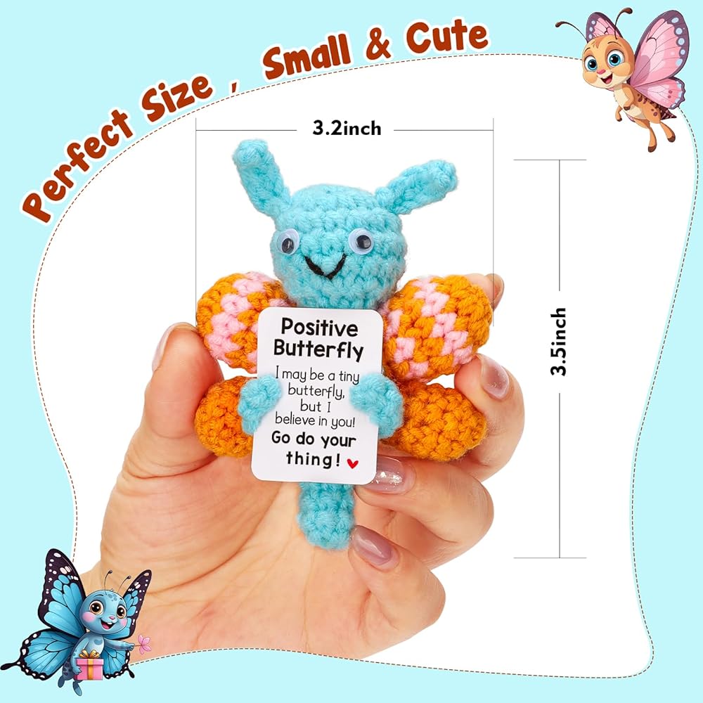 هدايا تشجيعية من الفراشة الصغيرة: سواء كنت بحاجة إلى مفاجأة أو تريد مفاجأة شخص ما بالقليل من التشجيع، فإن دمية الفراشة الصغيرة المضحكة هذه هي الخيار الأمثل. يمكن استخدامه كديكور مكتب أو كهدية فريدة لرفع معنويات المراهقين والبالغين.