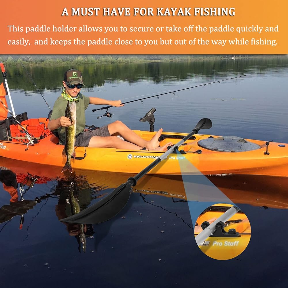 • 【يجب اقتناؤه من أجل الكاياك】حامل المجداف هذا متعدد الوظائف، فهو ليس رائعًا فقط لتأمين المجداف أثناء الصيد أو أخذ استراحة على قوارب الكاياك، ولكنه رائع أيضًا لحمل شبكة صيد أو عمود تثبيت كبير مثل مجدافك. يعمل مشبك المجداف هذا على إخراج المجداف بشكل آمن من الطريق مع الحفاظ على مسار الترس واضحًا لملحقاتي الأخرى.