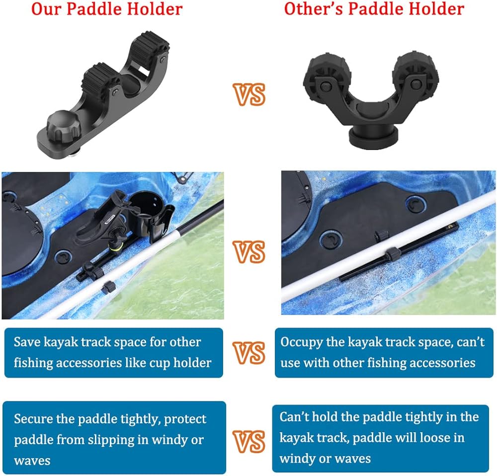 • 【مقارنة بحامل مجداف كاياك الآخر】يسمح لك مجداف الكاياك هذا بوضع المجداف على الجزء الخارجي من مساحة قضبان الكاياك لتوفير مساحة لأشياء أخرى مثل حامل قضيب الصيد لمسار الكاياك. بالإضافة إلى ذلك، فإن حامل المجداف الآخر لا يحمل المجداف بإحكام بما فيه الكفاية وسوف تفقد مجدافك بسهولة، ولكن حامل المجداف الخاص بنا يمكنه الحفاظ على المجداف بإحكام وأمان.