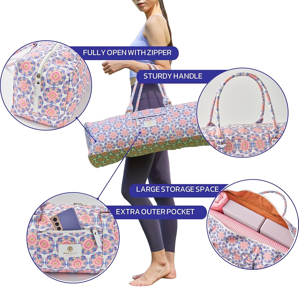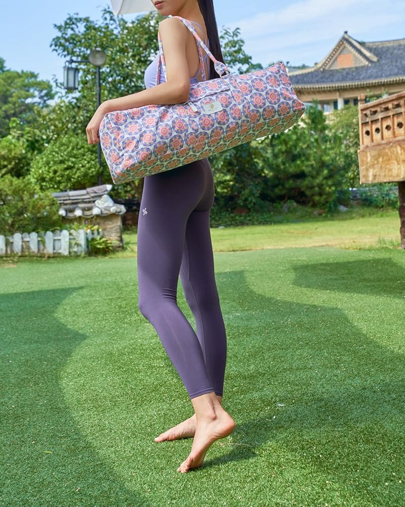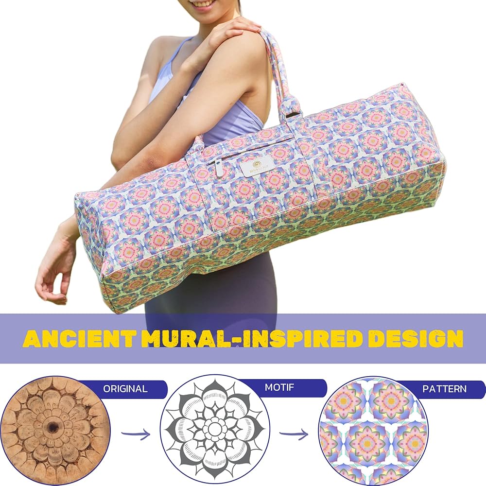 حقيبة سجادة اليوغا - تصميم مستوحى من اللوحات الجدارية القديمة، واسعة تتسع لسجادات تصل إلى 26 بوصة، ومكعبات وتخزين المناشف، وسحاب كامل سهل الاستخدام، وجيب خارجي مفيد
