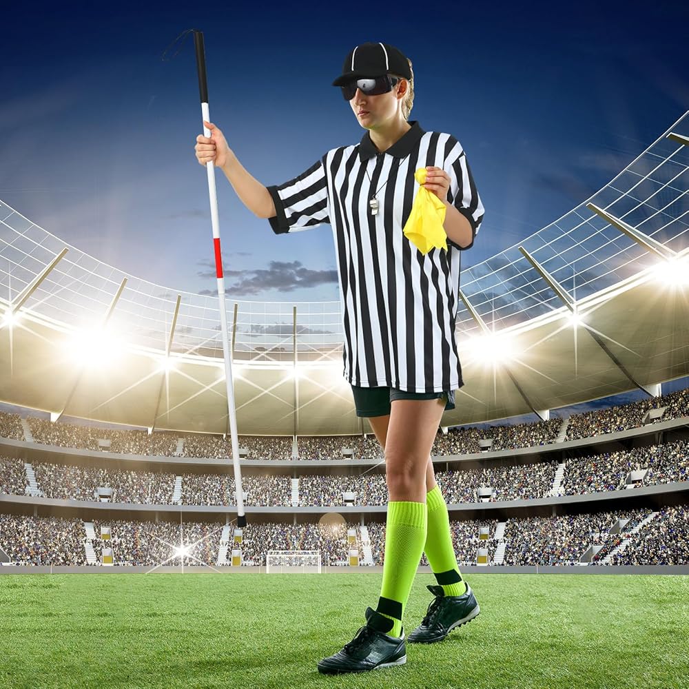 • مجموعة أدوات الحكم الشاملة: مجموعة زي الحكم الأعمى للرجال تأتي كاملة مع 1 قميص حكم مخطط بسحاب، 1 عصا عمياء قابلة للطي، 1 زوج من النظارات، 1 علم جزاء، 1 قبعة، 1 صافرة من الفولاذ المقاوم للصدأ مع حبل؛ مجموعة زي الحكم الأعمى هذه تجعلك مستعدًا لإجراء تلك المكالمات الصعبة