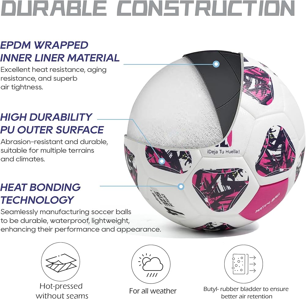 - هيكل متين: صُممت كرة القدم الخاصة بنا لتدوم طويلاً، وتتحمل الاستخدام المتكرر والظروف البيئية المختلفة.