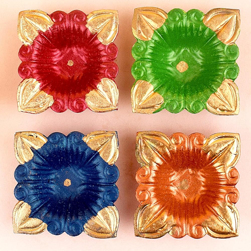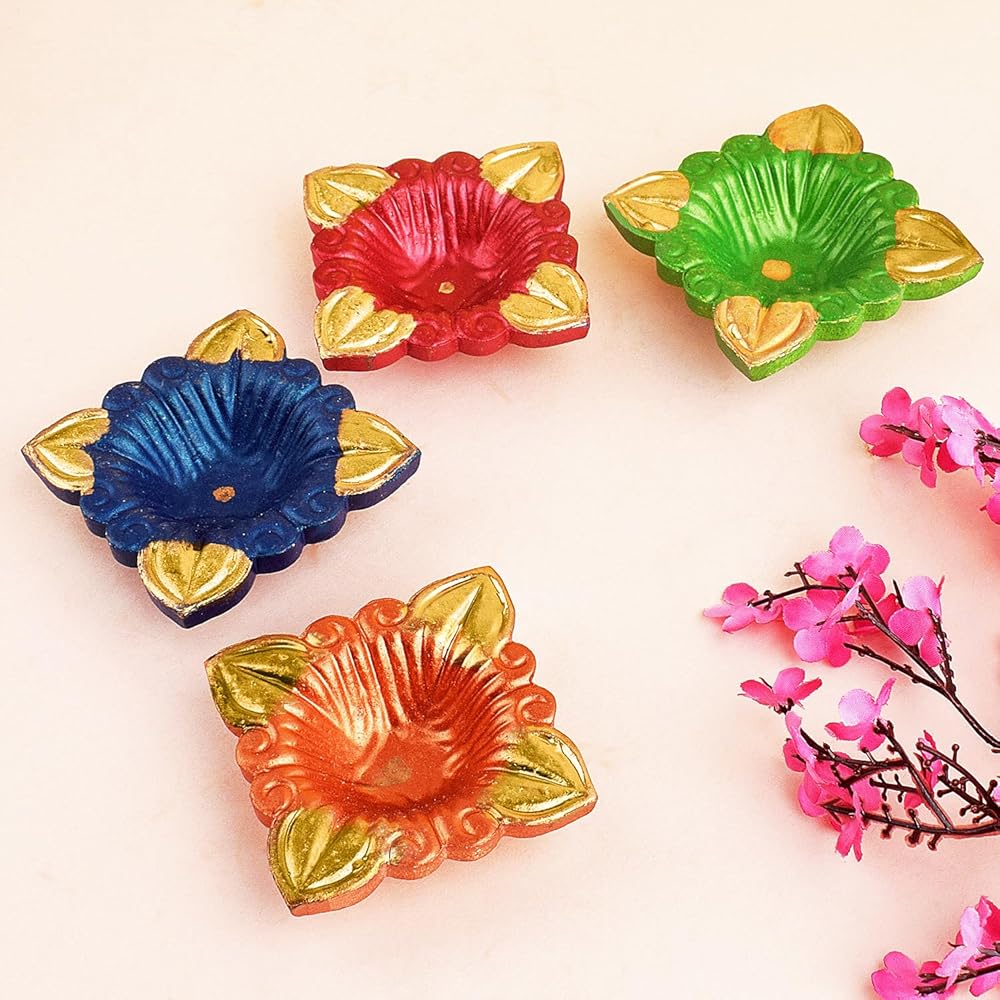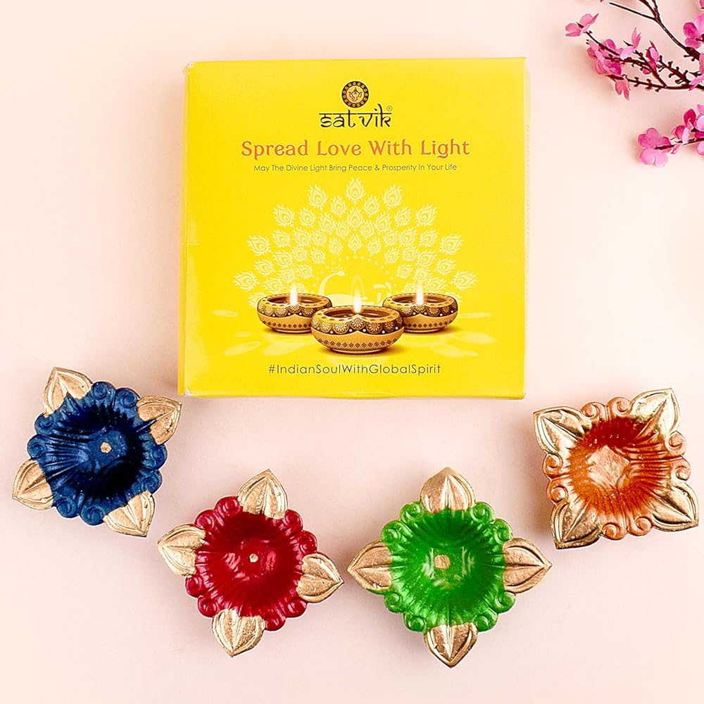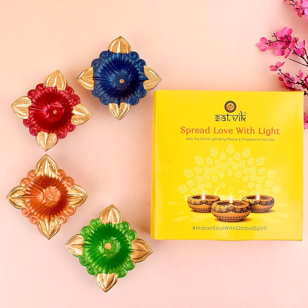 • Package Contains: Set of 4 Pc Multicolor Designer Clay Diya. The Set comes in Premium Gift Packing., So no need to Re-Pack.
