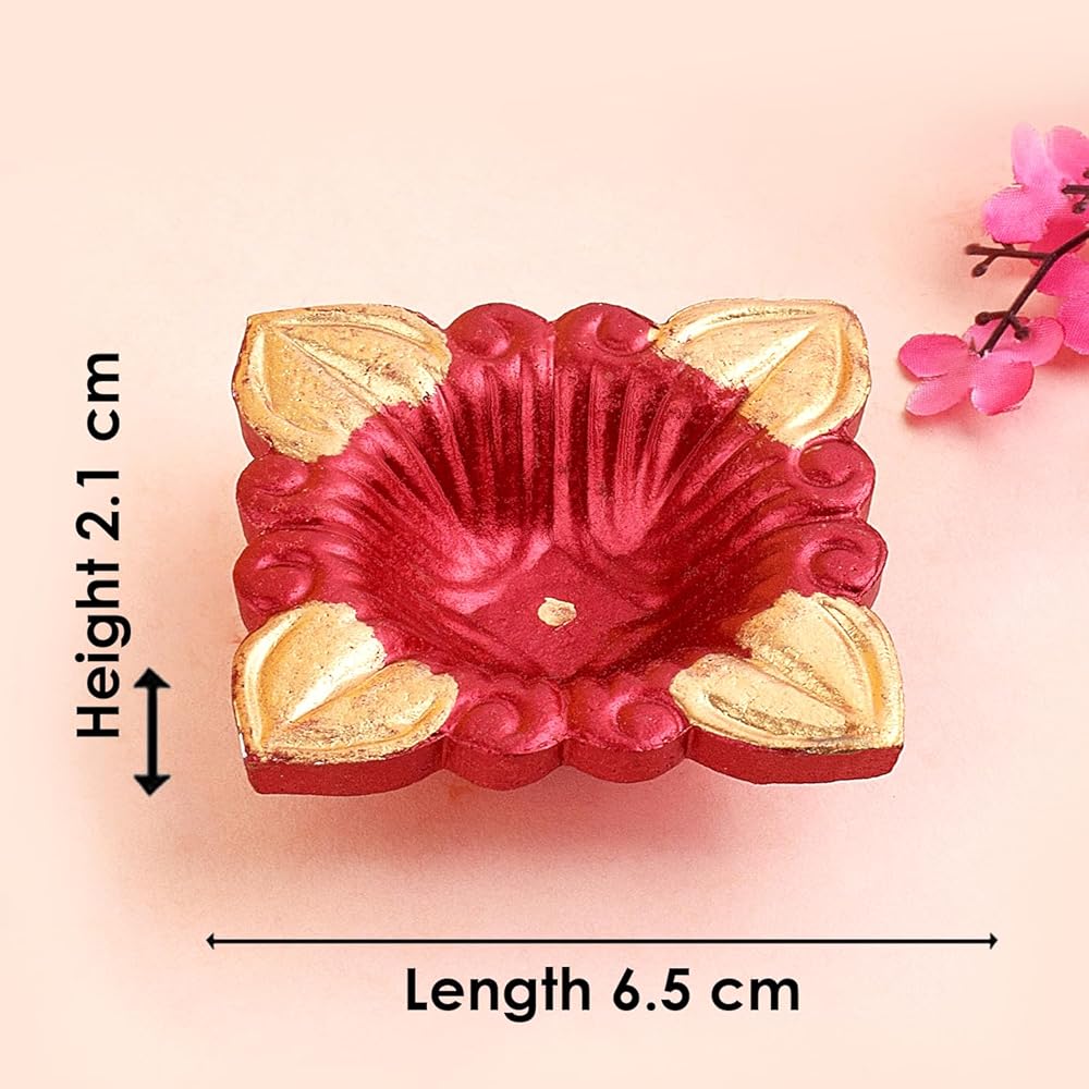 • Dimension(Each Diya): Length - 6.5 cm and Height - 2.1 cm. Material: Made of Natural Handmade Terracotta Clay Diya. Can be called Earthen Oil lamp. Mitti ka Diya