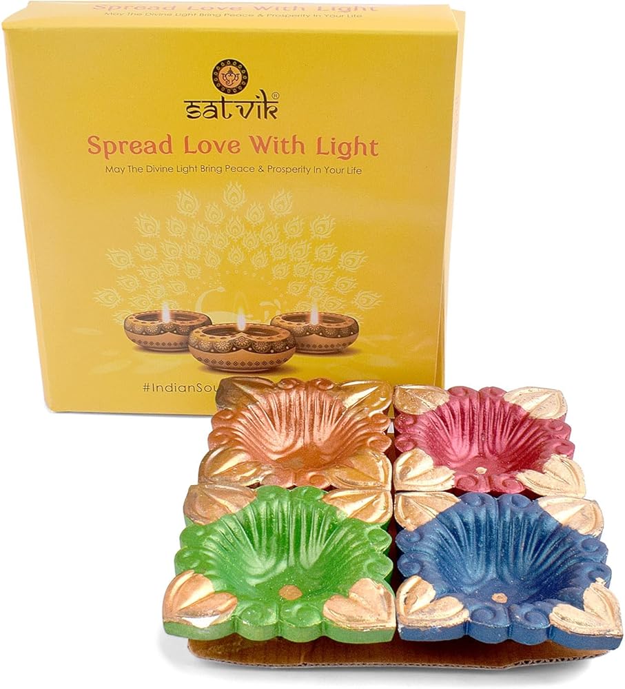Satvik Clay Diya Special Multicolored Diya will add more beauty to your home decor and festivities. Carved beautifully out of clay for this festival Diyas are an essential part of Diwali decoration. To considering this we came with the beautiful range of Diwali Collections. You can decor your home on Diwali festival with Diya, Tea-light holders, oil lamp, earthen diya, traditional diya, natural diya, colorful diya, designer diya, clay diya, terracotta diya, plain diya, stone diya, metal diya, shadow diya, door valance, toran, rangoli, colors, puja thali, pooja thali, platter, frills, hanging ball, paper lentern, big diyas, laxmi ganesha statue, luxmi, lakshmi, lord ganesha, Ganpati, diwali pujan, deepmala. Diwali Candles, Candle Holders, Candle Stand,Cotton Wicks Tea Light candle Holder. Use the above items to decorate your home.