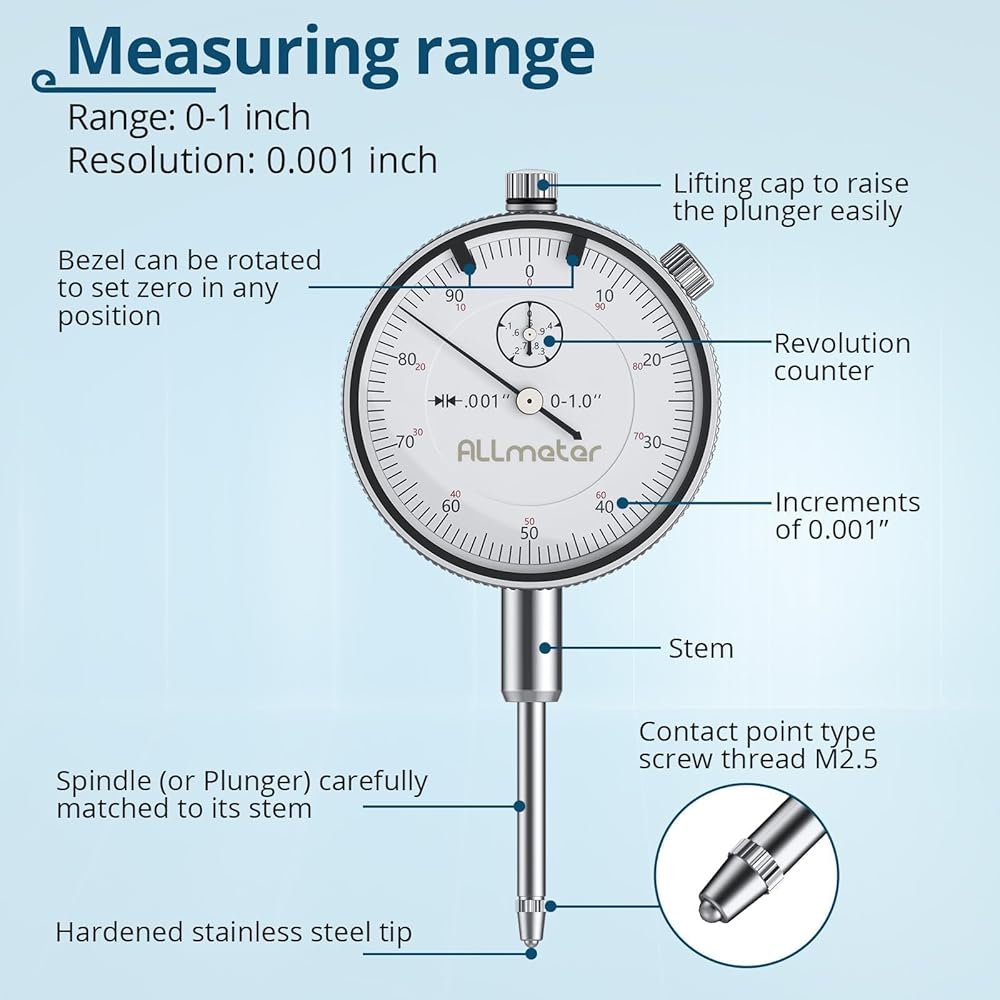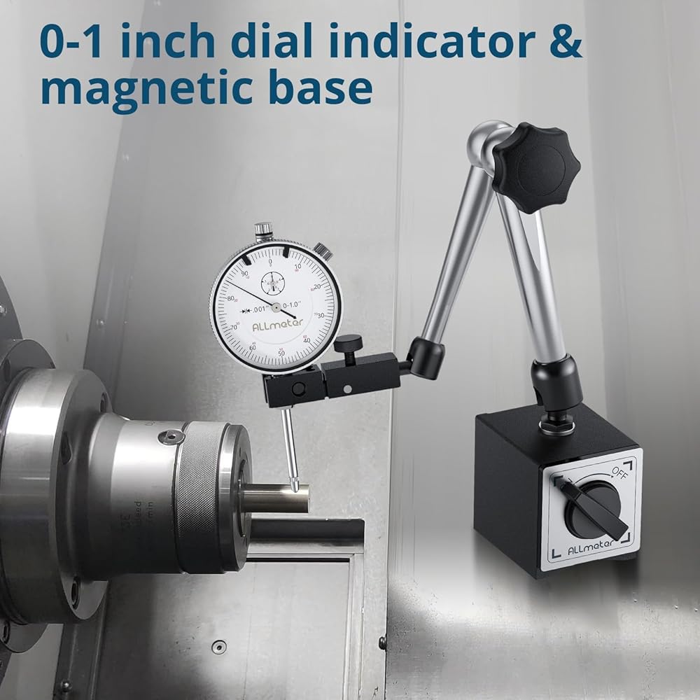 • القياس الدقيق: مؤشر القرص ذو القاعدة المغناطيسية يحقق دقة لا مثيل لها في قياساتك مع مؤشر القرص الذي يتميز بنطاق قياس من 0-1 بوصة ودقة 0.001 بوصة. مثالي للقياسات المقارنة في ورش العمل وغرف التفتيش، فهو يساعد في تقييم الأخطاء في الأشكال الهندسية، وقياس التشوهات بدقة، والتحقق من محاذاة مركز المخرطة