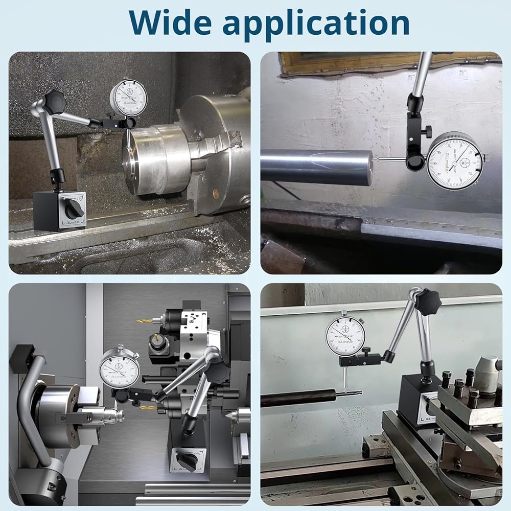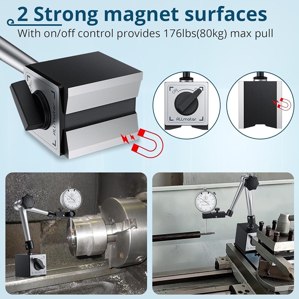 • سحر القاعدة المغناطيسية: مؤشر القرص الرقمي مع أدوات قياس القاعدة المغناطيسية مع سطحين مغناطيسيين صلبين مع تحكم في التشغيل/الإيقاف، توفر القاعدة المغناطيسية 176 رطلاً (80 كجم) ثباتًا استثنائيًا مع أذرع مرنة قابلة للتعديل وأسطح مغناطيسية صلبة، مما يضمن قياسات دقيقة في أي اتجاه. بالنسبة إلى 176 رطلاً / 80 كجم، يتطلب الأمر سطحًا/سطحًا معدنيًا بسمك 30 مم فما فوق