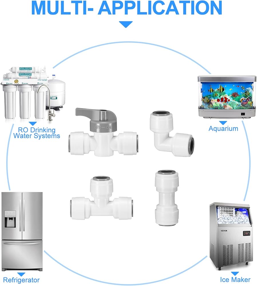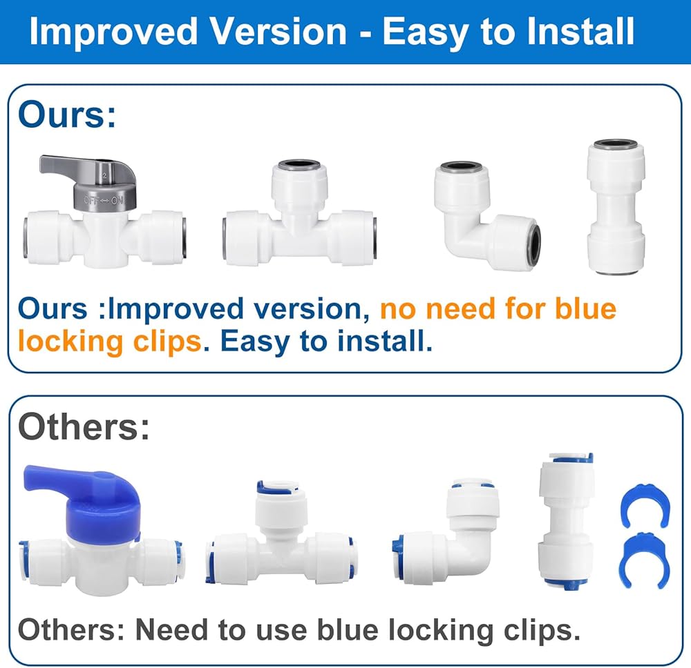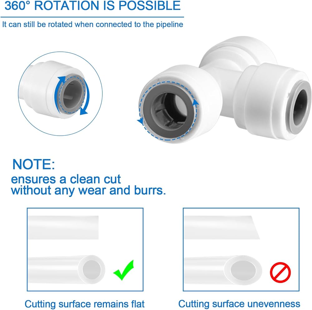 [الحجم القياسي]: تضمن القوالب والأتمتة عالية الدقة توحيد تركيبات خط المياه مقاس 3/8 بوصة؛ وتناسب أنابيب RO القياسية مقاس 3/8 بوصة المستخدمة في معظم أنظمة تنقية المياه.