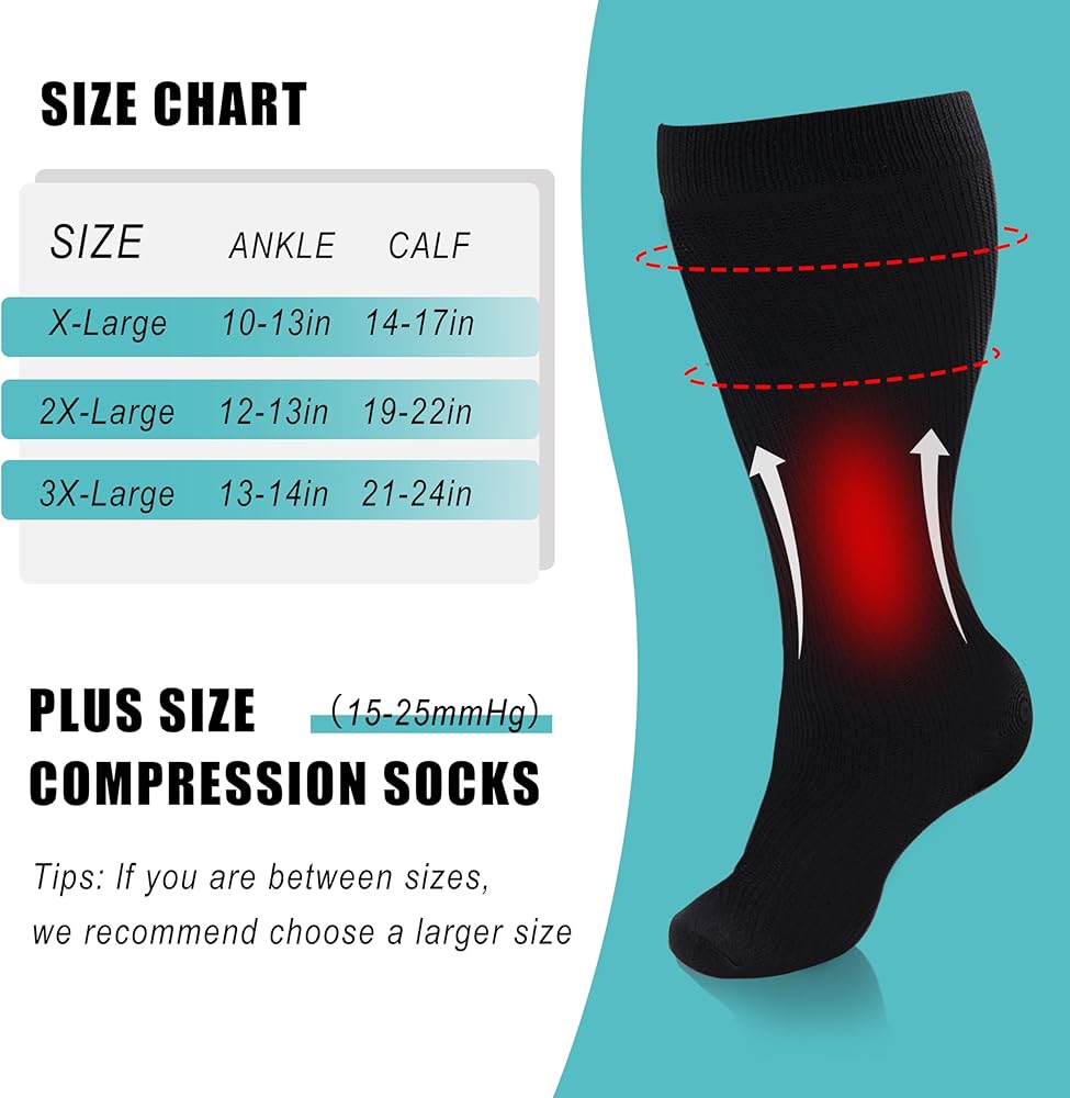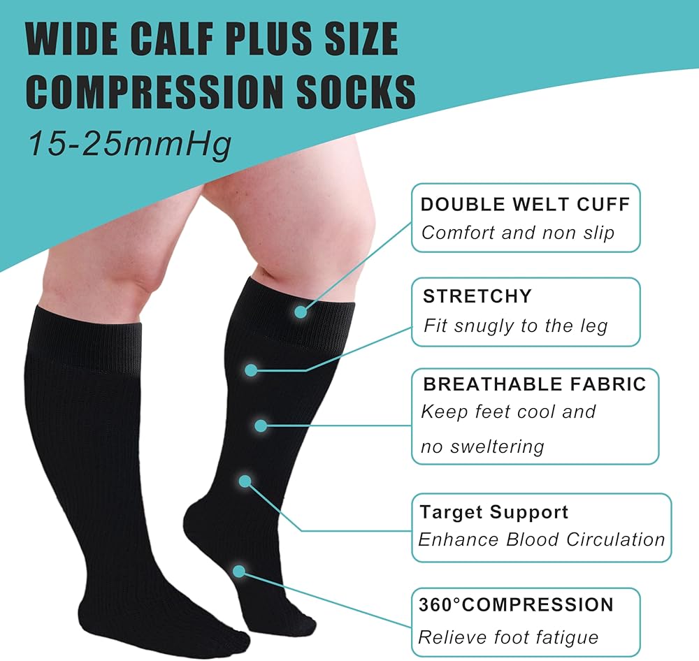 These plus size compression socks wide calf are ideal for a variety of activities, including walking, running, nursing, fi