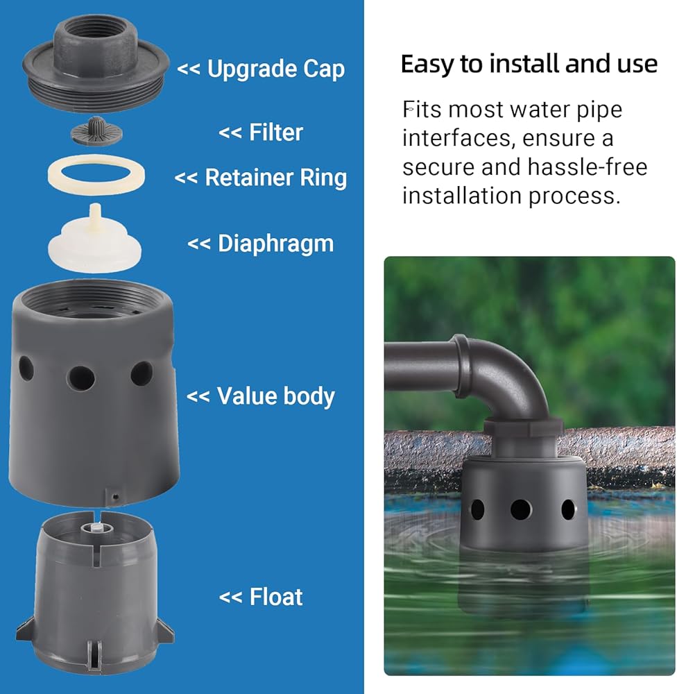 - تطبيقات متعددة الاستخدامات: مثالية للاستخدام في خزانات الماشية والري الزراعي وبرك الأسماك وخزانات المياه الخارجية وخزانات التخزين وخزانات الحدائق وأحواض السمك وحمامات السباحة والمزيد. هذا الصمام العائم مناسب لمختلف احتياجات إدارة المياه.