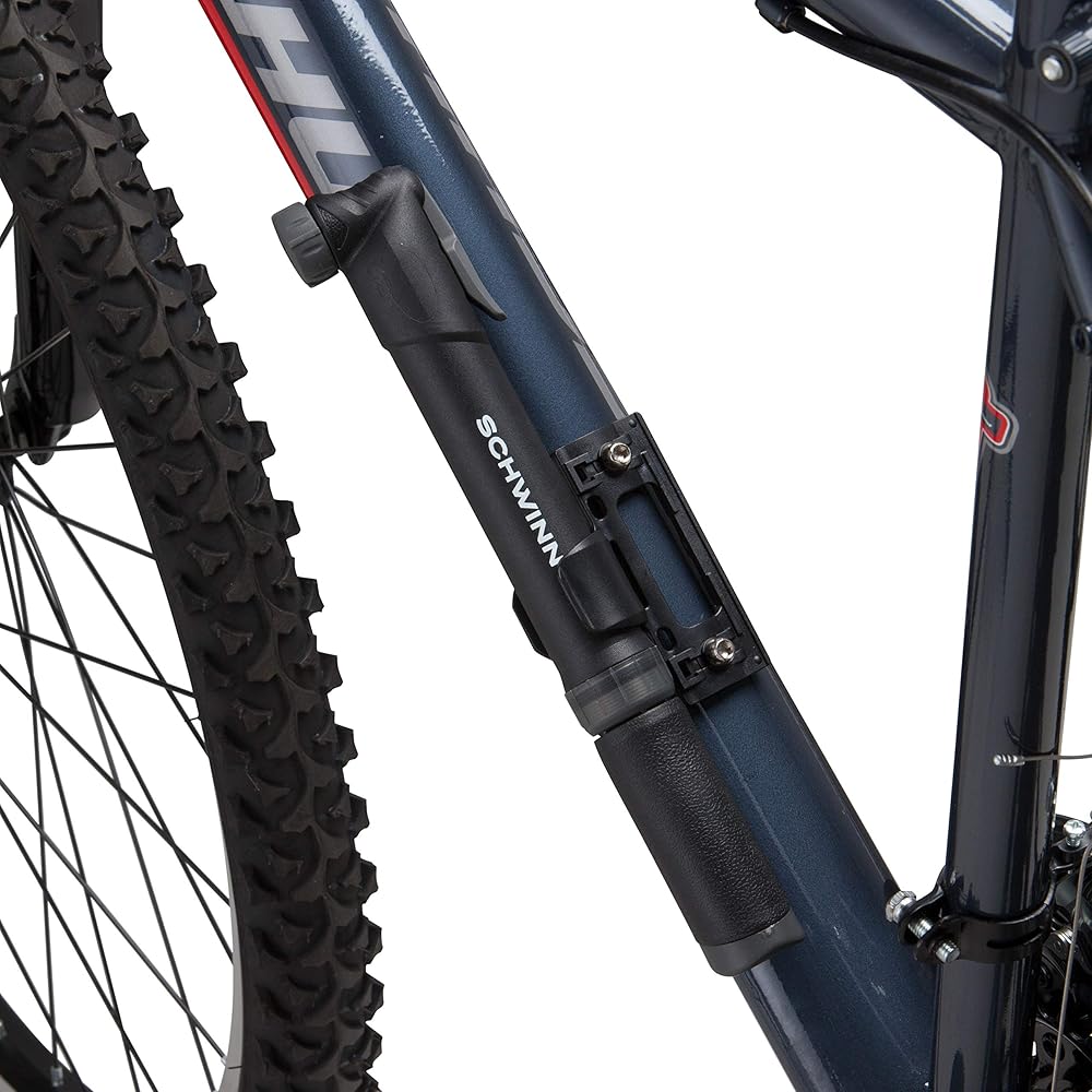 Never deal with flat tires again thanks to the Schwinn Basic Frame Pump. This tiny, lightweight pump comes with a handy mounting bracket so you can attach it directly to the frame of your bike. This means you'll have a pump ready to go next time you encounter a flat ten miles into your ride or on your morning commute. With a reversible nozzle adaptor, it's easy to inflate both Schrader and Presta valves, which means every bike in the family will be covered. Don't let its size fool you, this durable pump can inflate up to 80 PSI for all your inflation needs. With a dent- and rust-free composite barrel, this Basic Frame Pump will keep your tires rolling smoothly for years to come. Enjoy the freedom of riding with Schwinn.