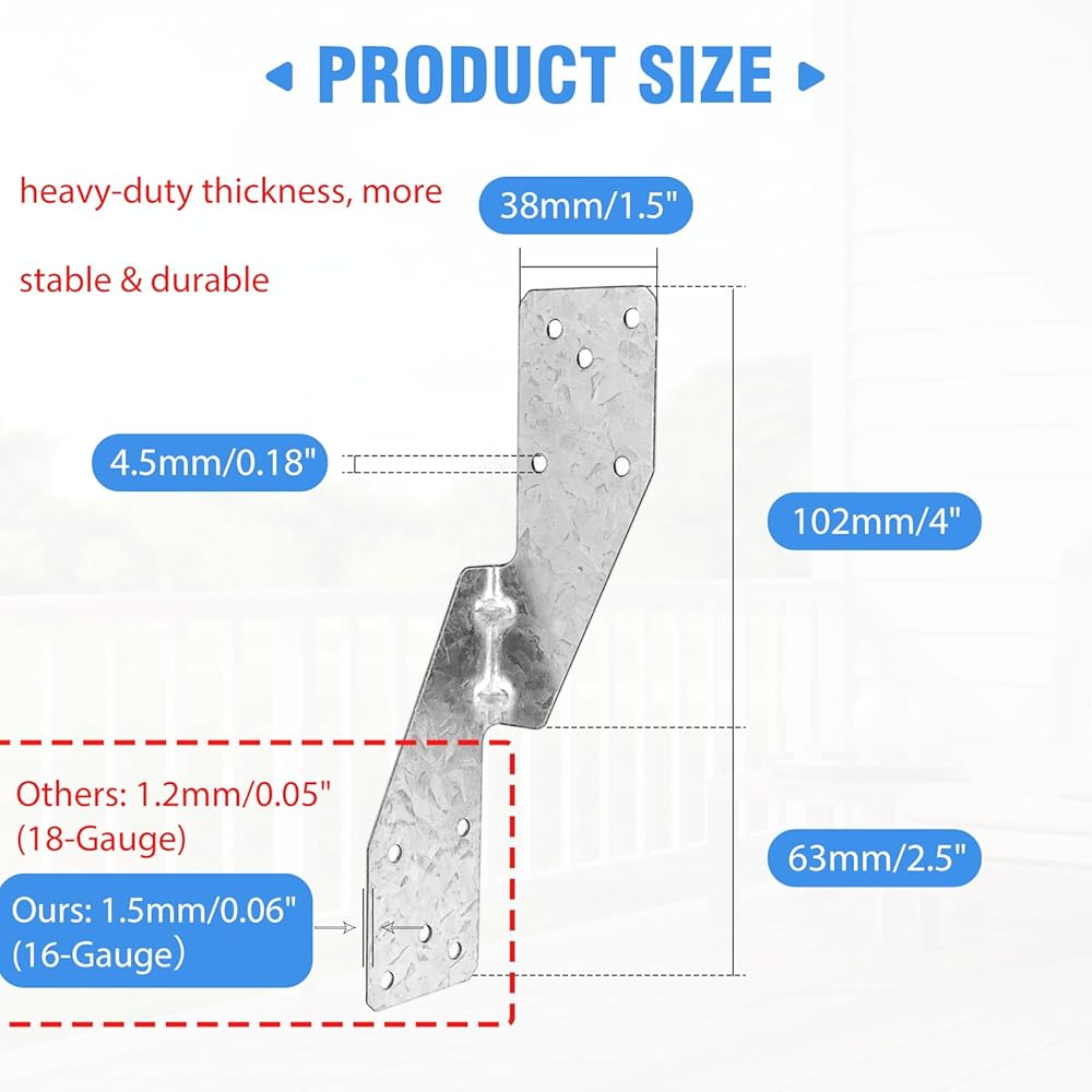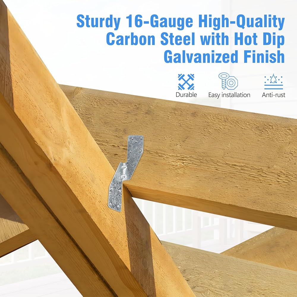 دعم قوي: يحمي من الأحمال الجانبية والرفع، ويتحمل 850 رطلاً من دعم الرفع. يربط الروافد والعوارض الخشبية بثبات لا يتزعزع.
