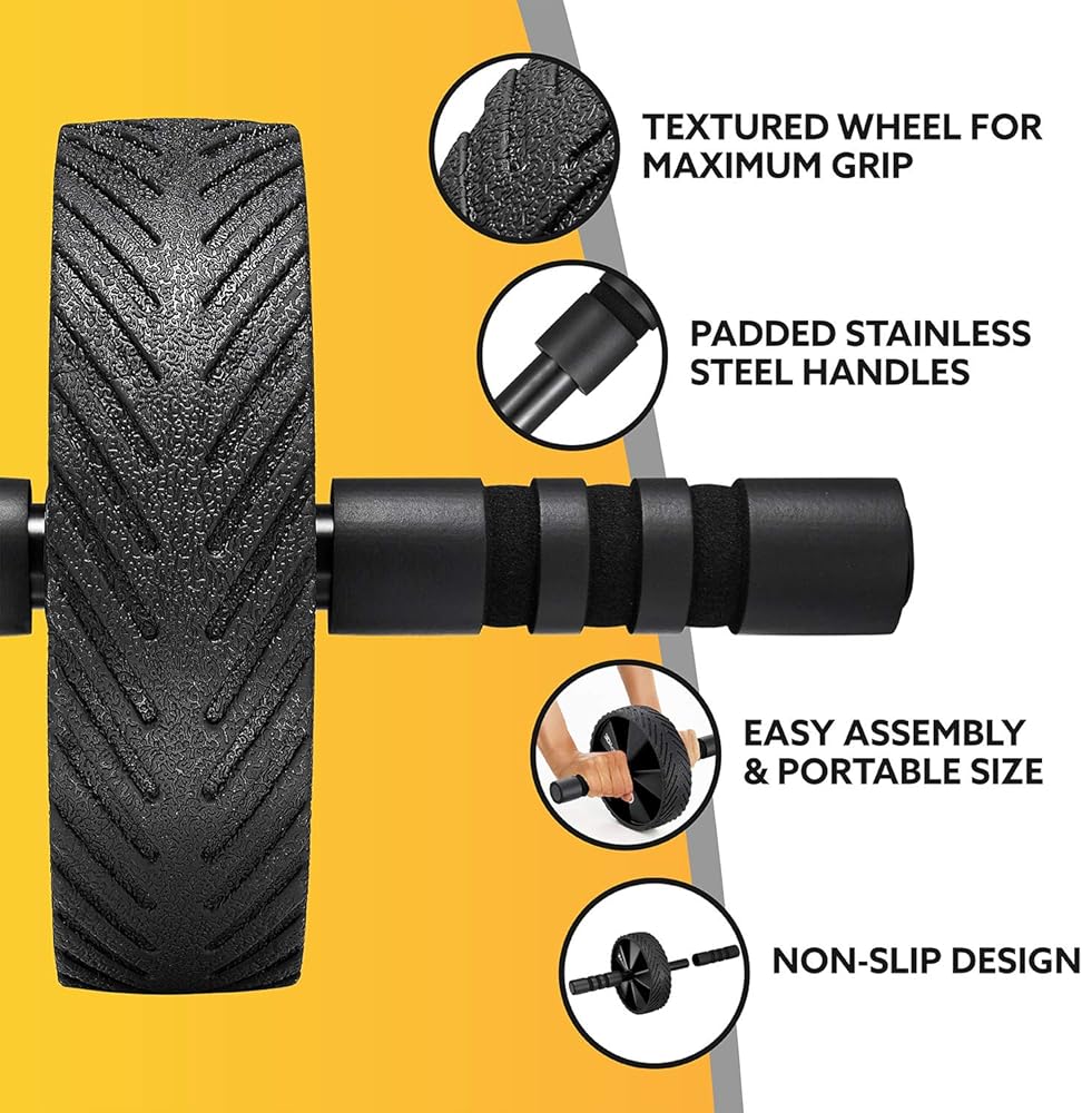 SUPERIOR QUALITY - Workout with confidence. Our ab wheel features a super strong coated steel bar with comfortable ergonomic NBR foam handles.Our jump rope has an adjustable tangle-free wire rope and non-slip foam handles.