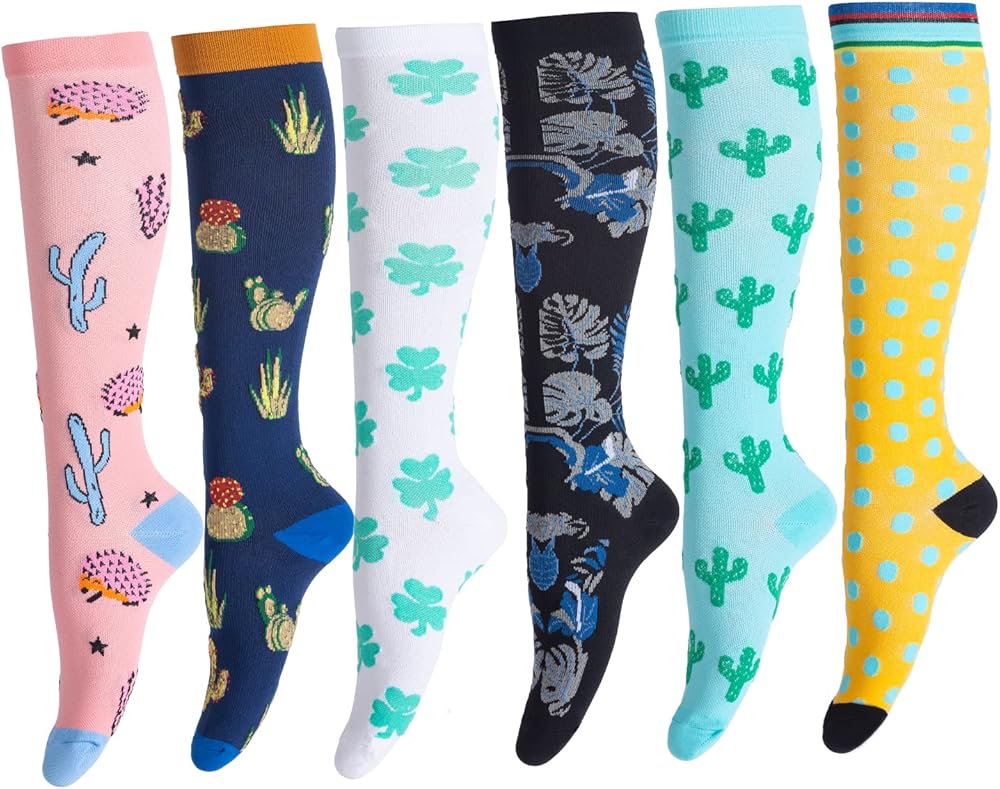 توفير الدعم والحماية - نحن نستخدم تقنية الضغط المتدرج لصنع هذه الجوارب الضاغطة اللطيفة، والتي توفر دعمًا قويًا لساقيك، ولكنها لن تجعلك تشعر بعدم الراحة والضيق. هذه الجوارب النسائية الضاغطة مناسبة للممرضات والحوامل والباحثين والرياضات والجري والتخييم والمشي لمسافات طويلة وما إلى ذلك، والتي يمكن أن تعزز الدورة الدموية وتخفف آلام الساق وتمنع الكاحلين والساق من الاحتكاك والتورم بعد الوقوف لفترة طويلة. وقت.