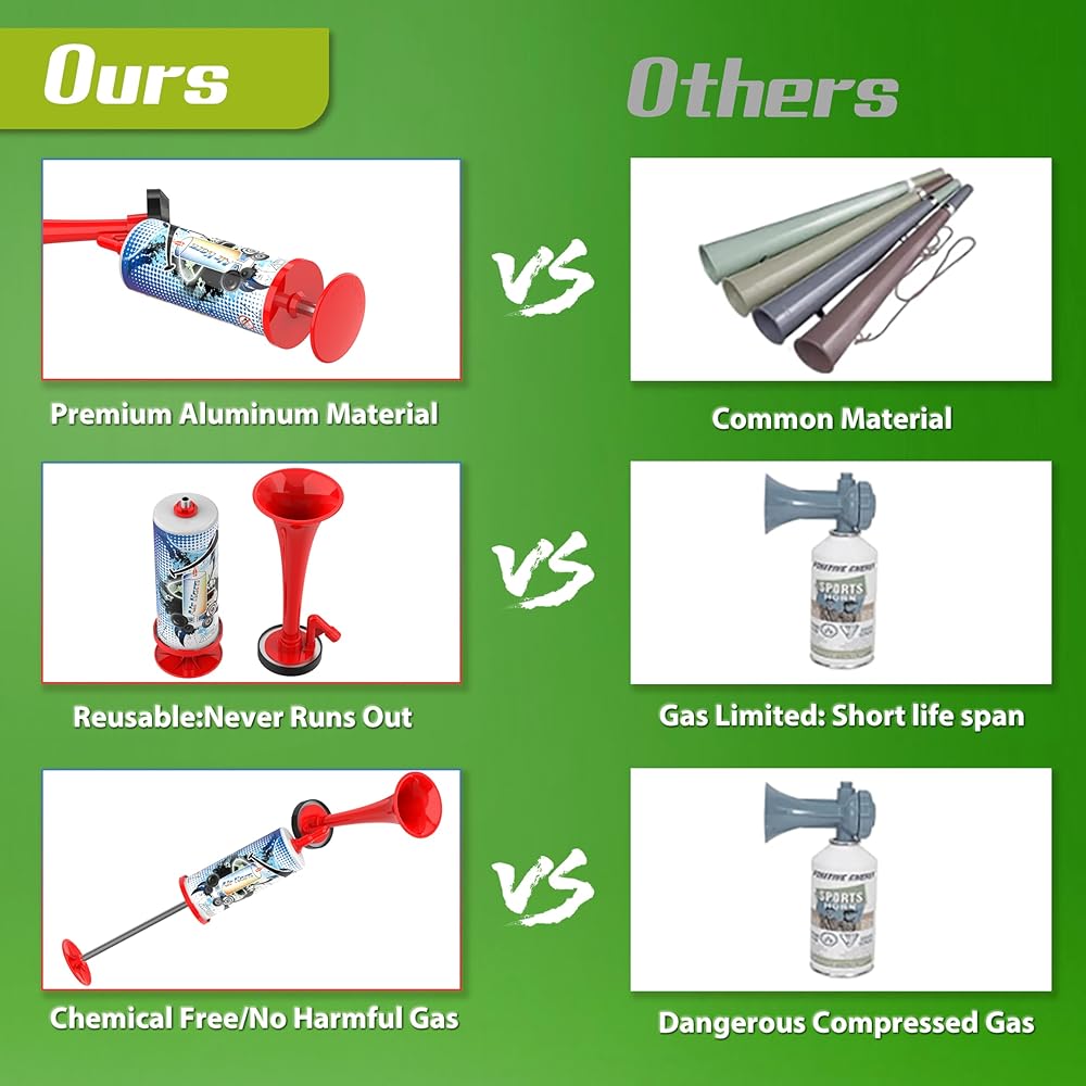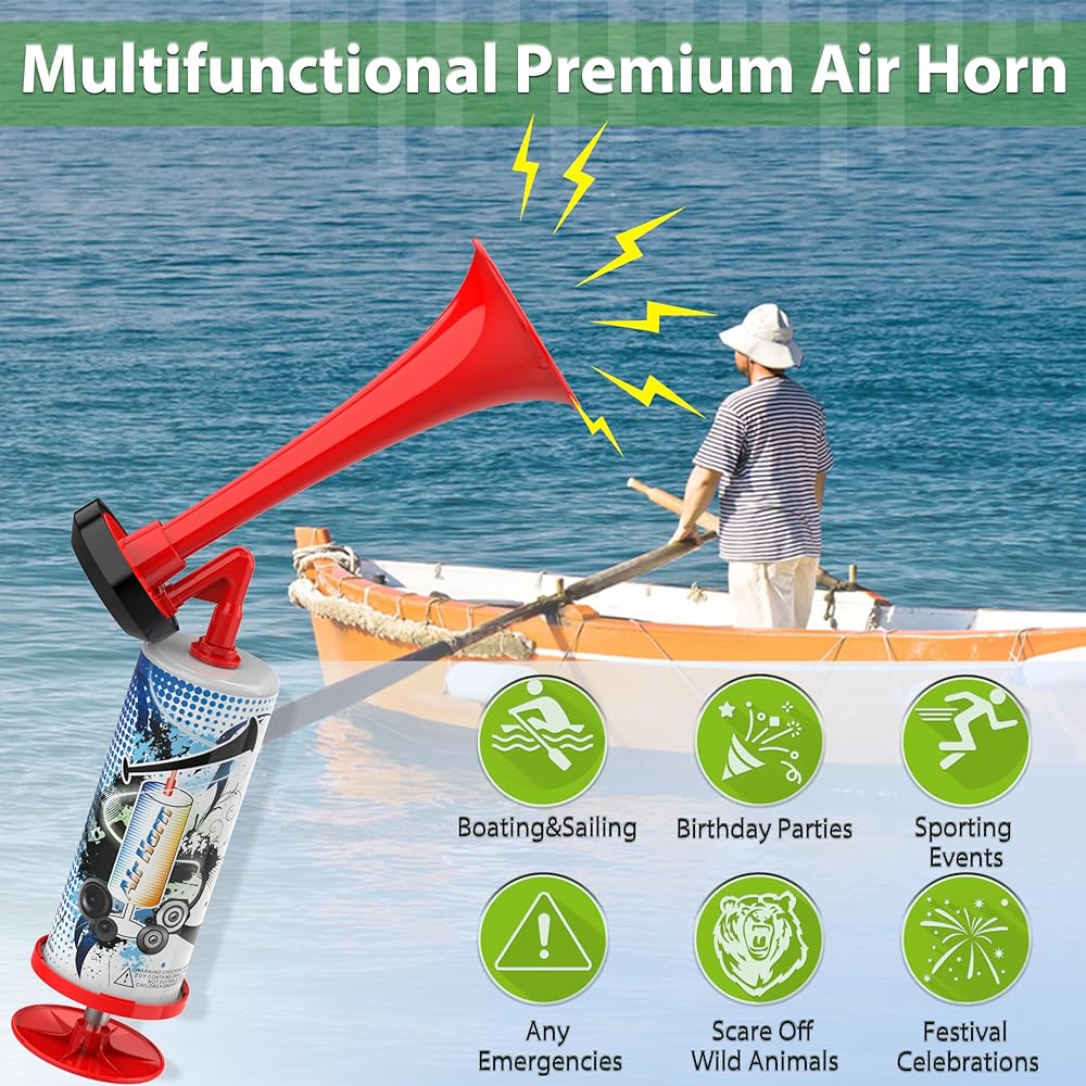 【متعدد الاستخدامات وعملي】تم تصميم بوق الهواء الذي يعمل بالدفع اليدوي لمجموعة واسعة من الأنشطة، مما يجعله مثاليًا لأغراض مختلفة. سواء كنت في حاجة إليها للسلامة البحرية وحالات الضيق، أو الأحداث الرياضية، أو رحلات التخييم، أو حتى كقرن دب للدفاع عن النفس، فإن هذه الأداة متعددة الاستخدامات ستلبي احتياجاتك. وهو أيضًا جهاز يمكن الاعتماد عليه في حالات الطوارئ. كن مستعدًا ومحميًا باستخدام بوق الهواء المحمول متعدد الأغراض. بالإضافة إلى ذلك، فهو استخدام رائع للحفلات وحفلات التخرج والاحتفالات وأعياد الميلاد ولعب مزحة على شخص ما!