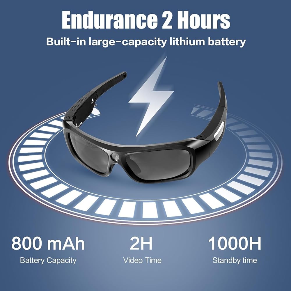 سهل النقل والعرض - فقط قم بتوصيل النظارات الشمسية وجهاز الكمبيوتر الخاص بك باستخدام كابل USB المتضمن، ثم يمكنك الاستمتاع باللحظة المثيرة التي تقوم فيها بركوب الدراجات النارية، والتجديف، وتسلق الجبال، والتخييم، والقيادة، والتنزه سيرًا على الأقدام، والتزلج، والصيد...