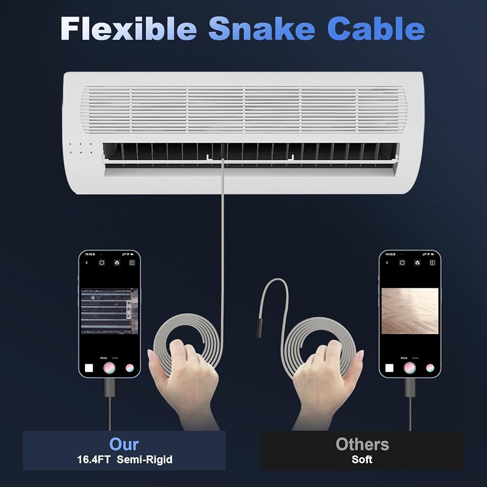 [كابل ذو شكل قابل للانحناء وثابت] يمكن لكاميرا الصرف الصحي مع كابل شبه صلب بطول 16.5 قدم أن يتم فتحه ولفه بسرعة مما يجعل العمل أسهل. يمكنك ثنيه وتشكيله يدويًا بسهولة مع الحفاظ على شكله.