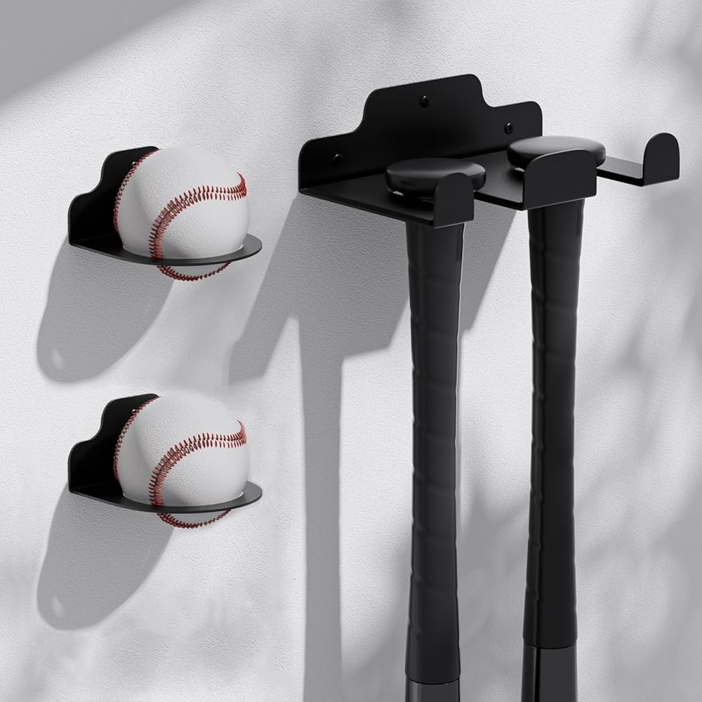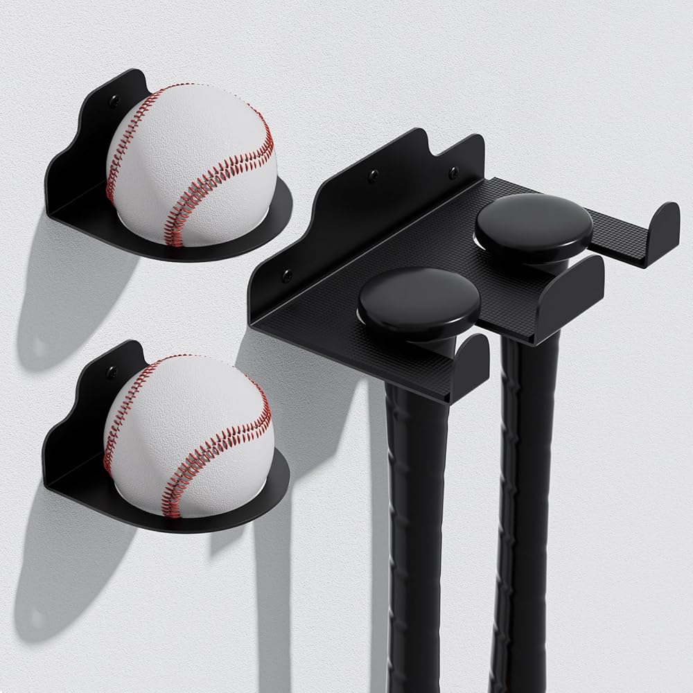 JNIHEEP Baseball Holder Racks - Show Off Your Favorite Memorabilia Ball and Bat to Keep Your Favorites at Your Fingertips