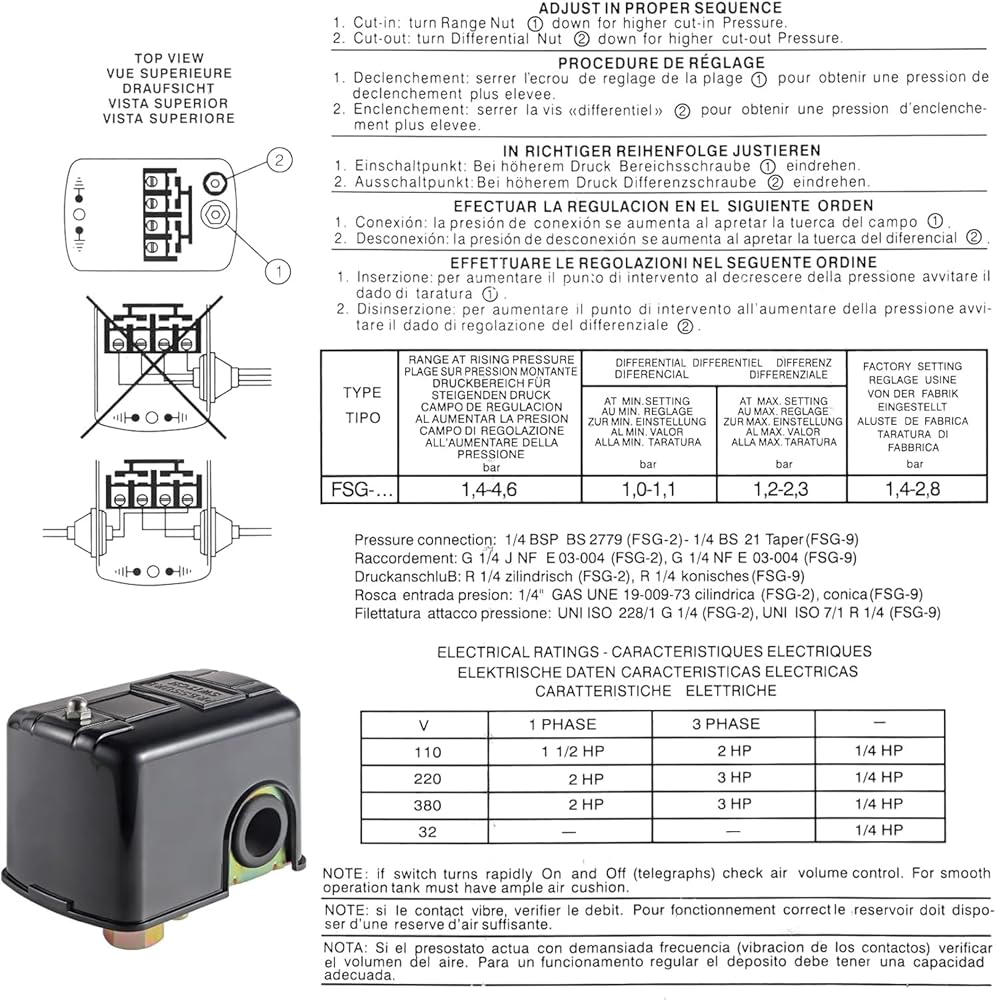 Materials: The pressure control switch is made of high quality materials for strong strength and long durability. Large contacts for longer servicing life open on rising pressure
