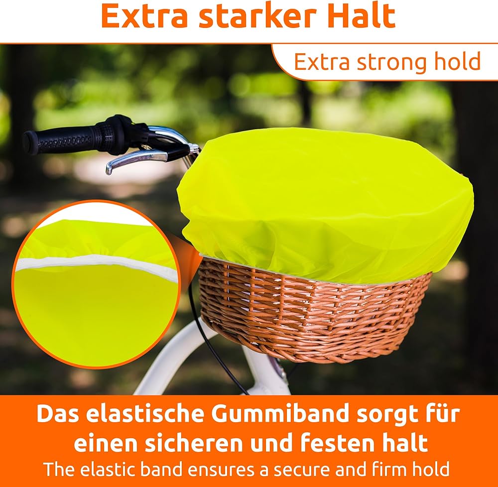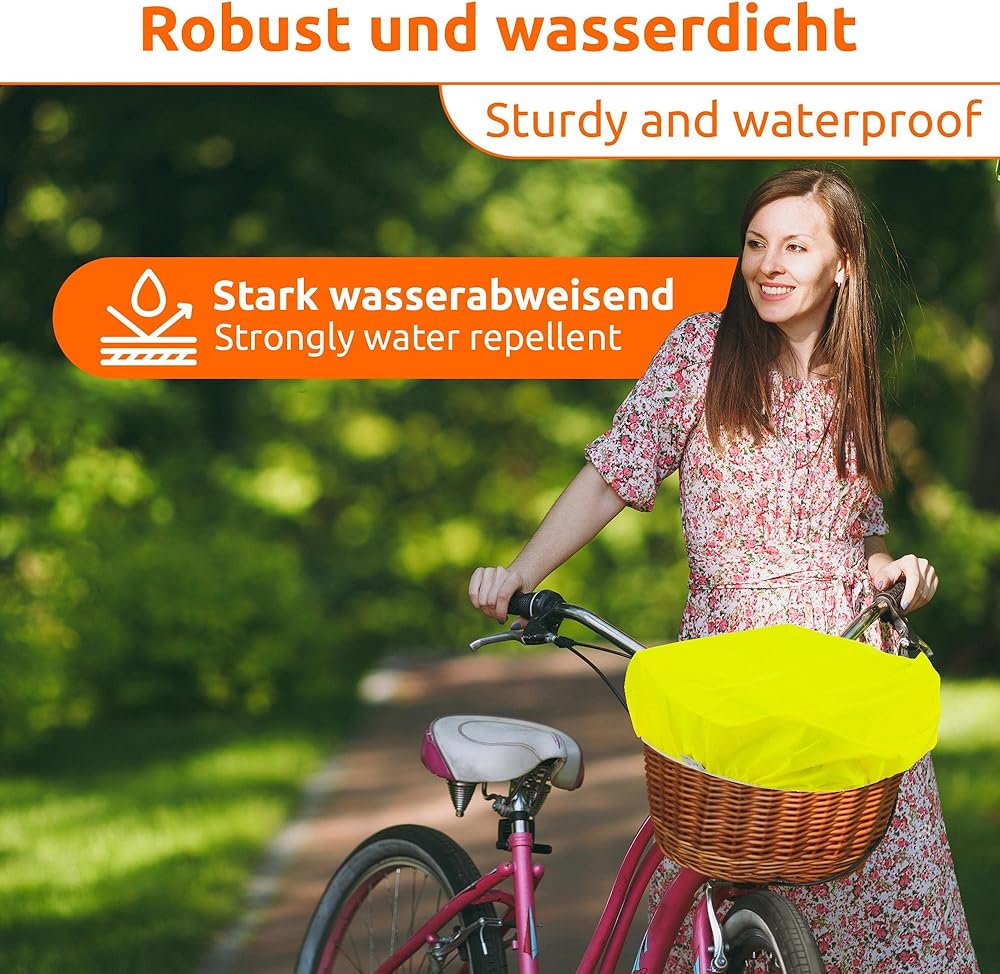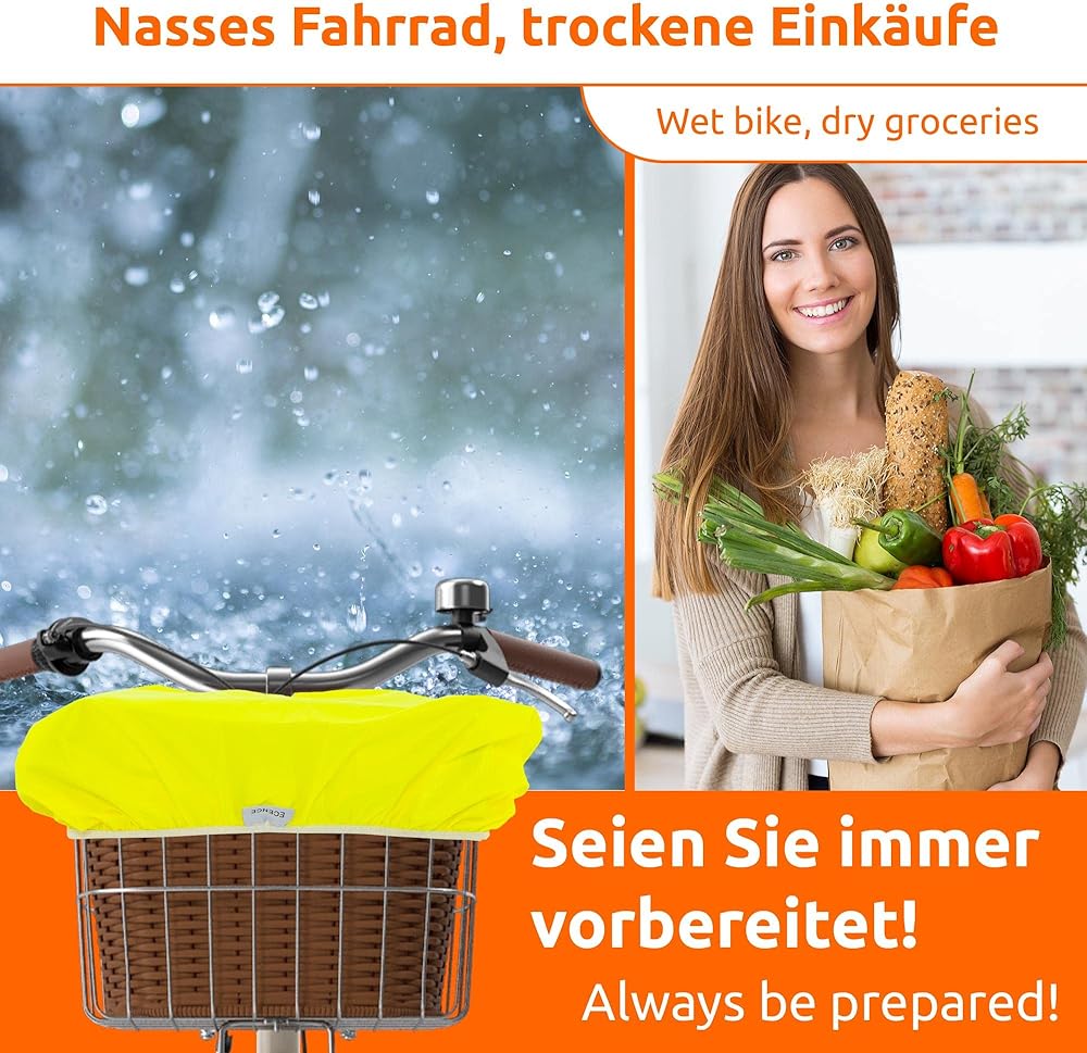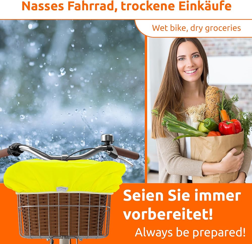 حماية عملية من المطر: بفضل هذا الغطاء الواقي، ستبقى مشترياتك جافة حتى في المطر. يمكنك ركوب دراجتك مهما كانت حالة الطقس. كما يحمي الغطاء السلة من تساقط الأوراق والأوساخ.