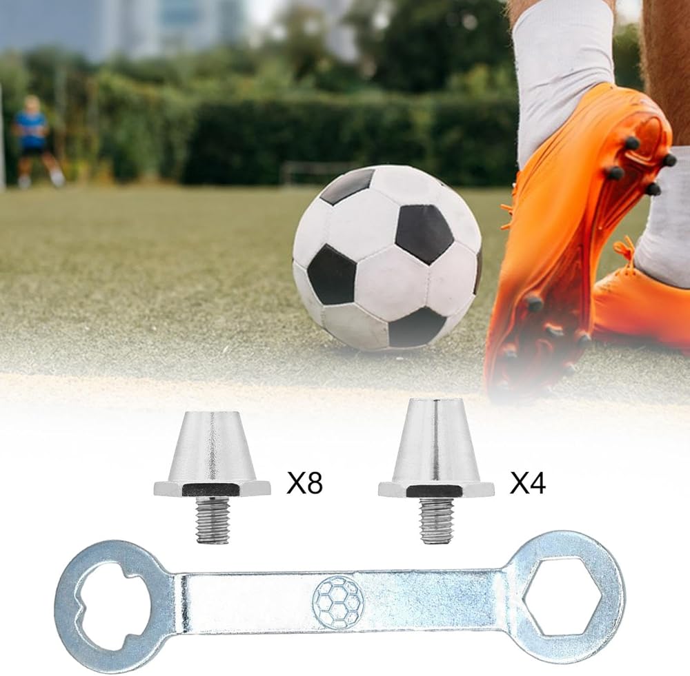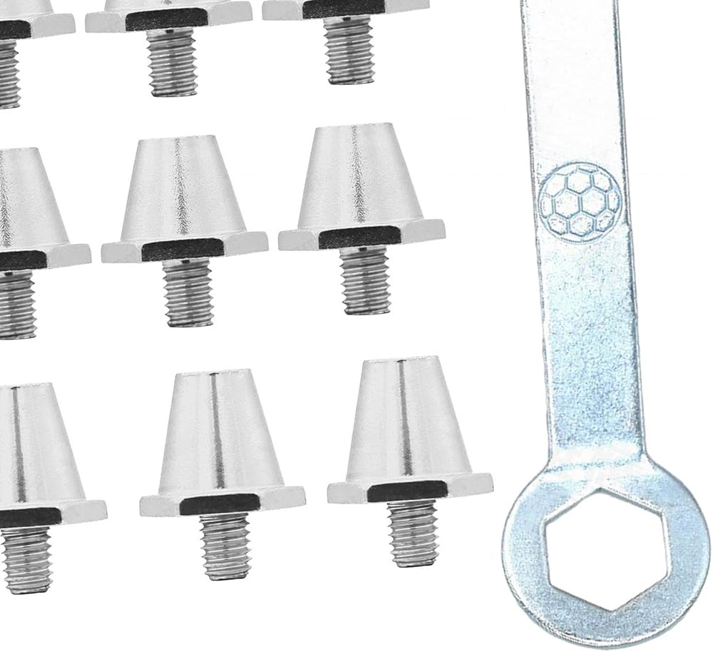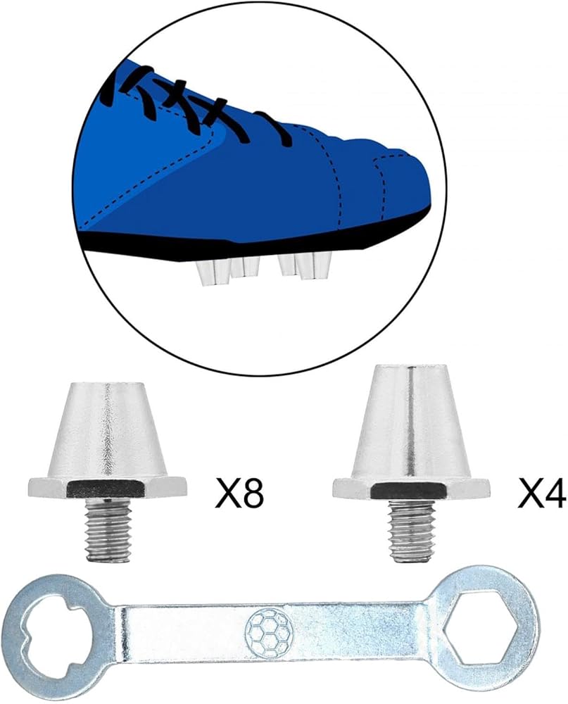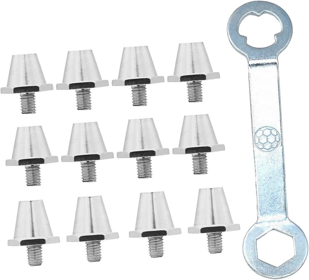 B Baosity 12x حذاء كرة القدم المسامير المسار المسامير شركة الأرض مستقرة المسمار في الرجبي ترصيع استبدال المسامير كرة القدم المرابط للتدريب، 11 مم 13 مم، فضي مع مفتاح ربط