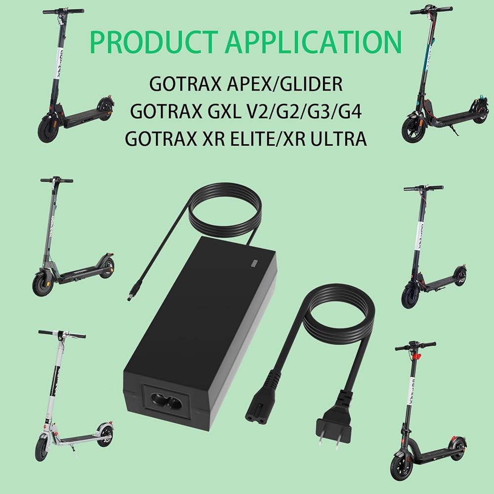 شاحن سكوتر كهربائي 42 فولت 2 أمبير لبطارية ليثيوم أيون 36 فولت، متوافق مع GOTRAX GXL V2، G2، G3، G4، Apex، Glider، XR Elite، XR Ultra