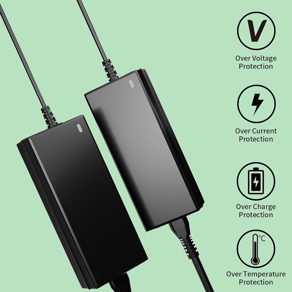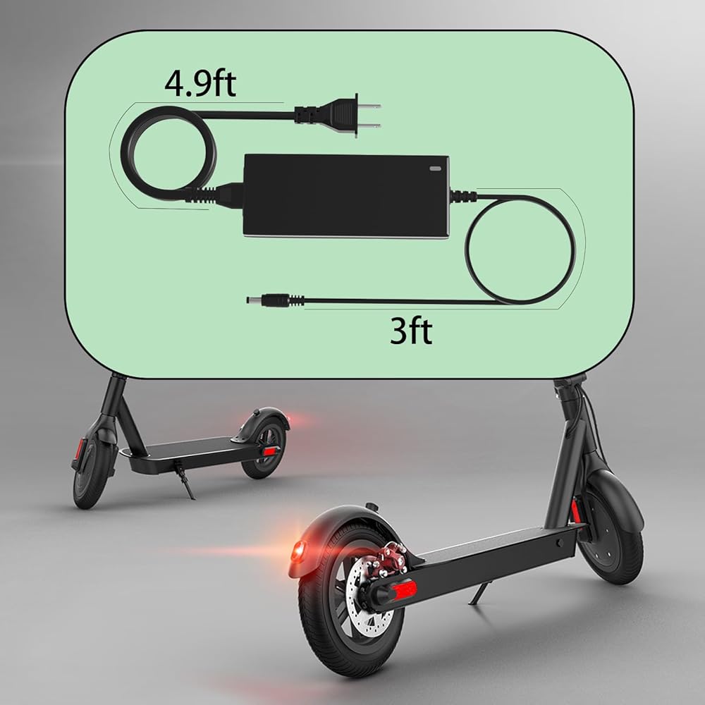 • توافق واسع: شاحن بطارية السكوتر الكهربائي 42 فولت مصمم ليتوافق مع بطاريات GOTRAX GXL V2، G4، G3، G2، Apex، Glider، XR Elite، XR Ultra، 36 فولت ليثيوم أيون