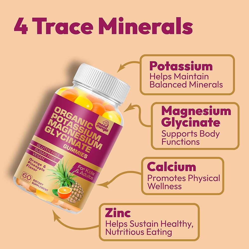 4 معادن ضئيلة في حصة واحدة: كل علكة من علكة البوتاسيوم والمغنيسيوم توفر للأطفال والكبار المعادن النزرة الأساسية مثل المغنيسيوم والكالسيوم والبوتاسيوم والزنك لدعم الوظائف الأساسية والرفاهية العامة.