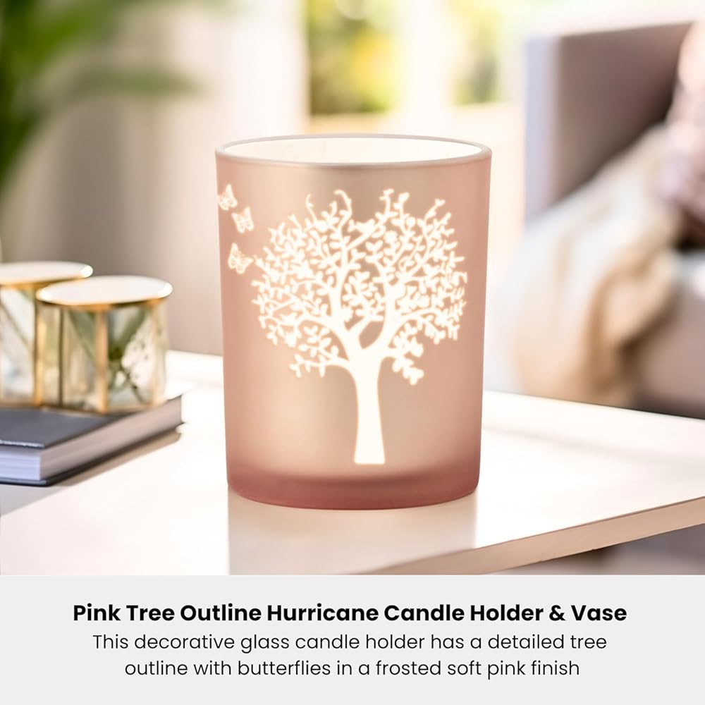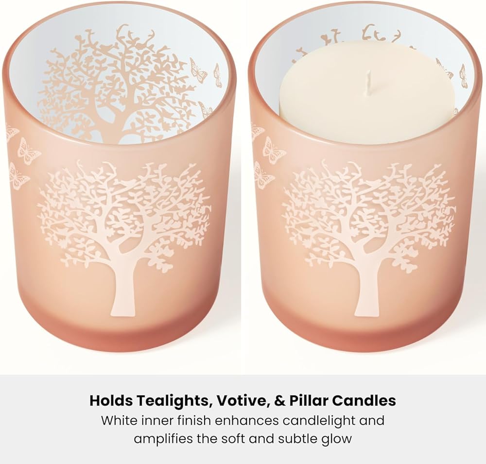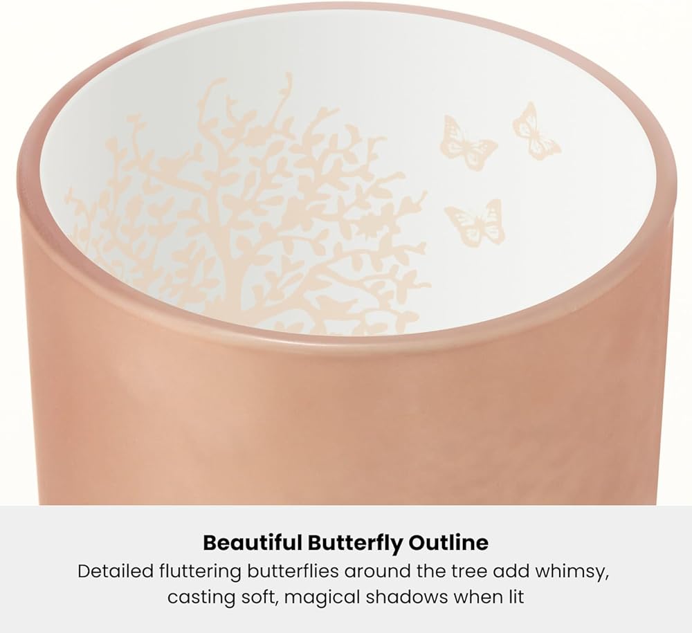 • CREATE A SERENE ATMOSPHERE: Light a candle in this tealight candle holder and pillar candle holder to instantly create a calming and serene environment. The soft, flickering light combined with the beautiful pink glass and butterfly details will transform any room into a cozy, tranquil retreat