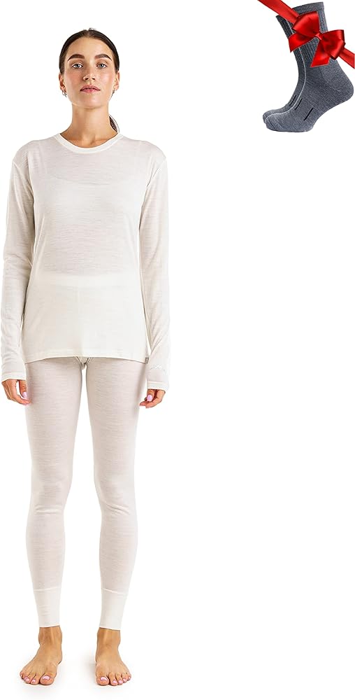 فائقة النعومة ومريحة - مجموعة طبقة أساسية من الميرينو للسيدات فائقة النعومة بنسبة 100% 17.5 ميكرون توفر الراحة طوال اليوم وبدون حكة! مصمم للارتداء اليومي دون فرك أو ارتفاع درجة الحرارة أو تكدس القطن العادي.