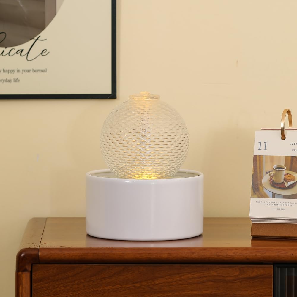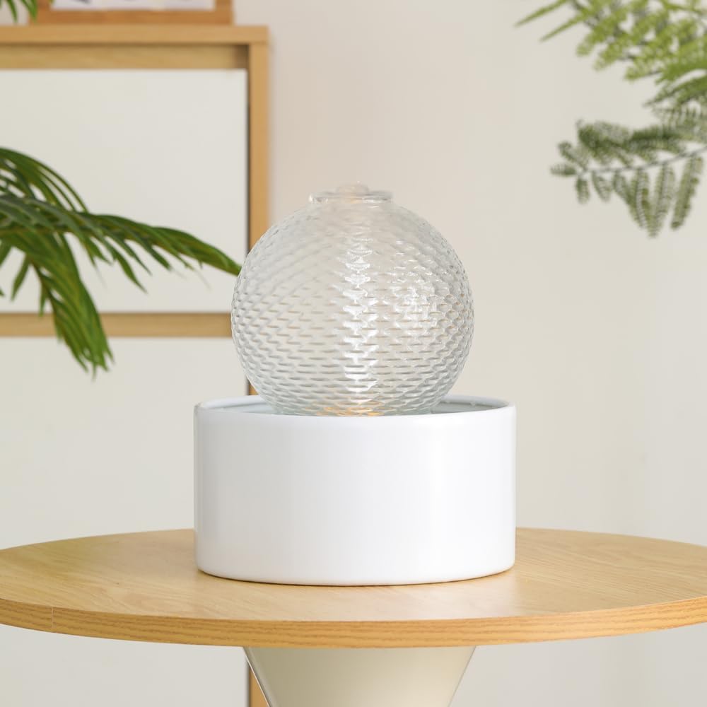 ميزة المياه الداخلية على الطاولة نافورة سيراميك للمنزل والمطبخ والمكتب وتصميم عصري (أبيض)