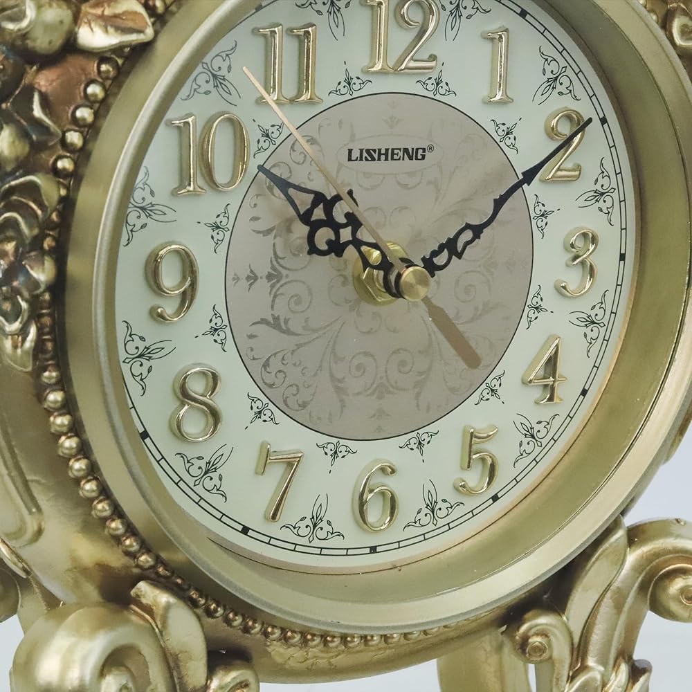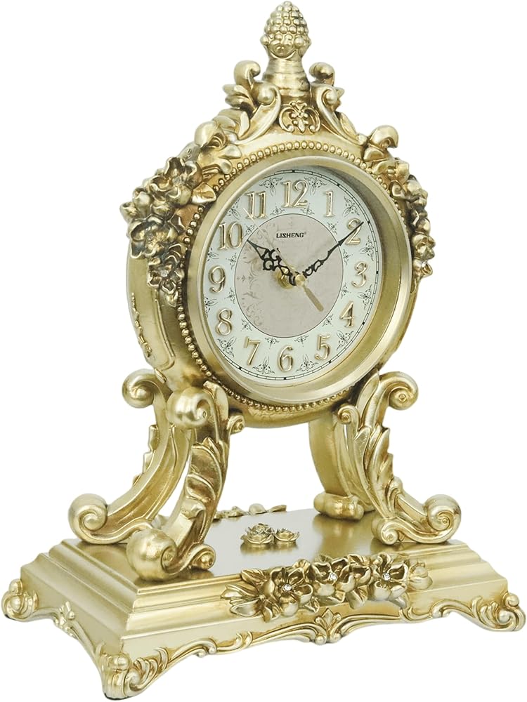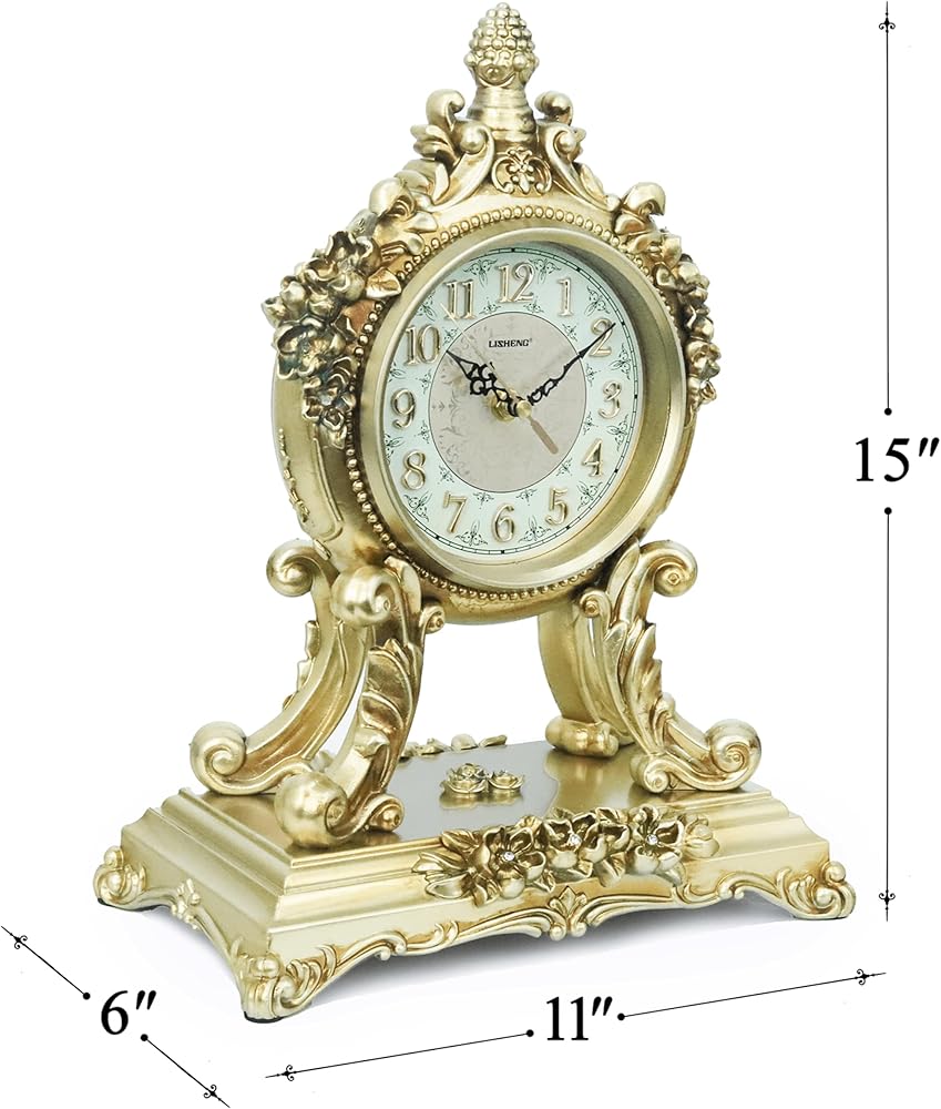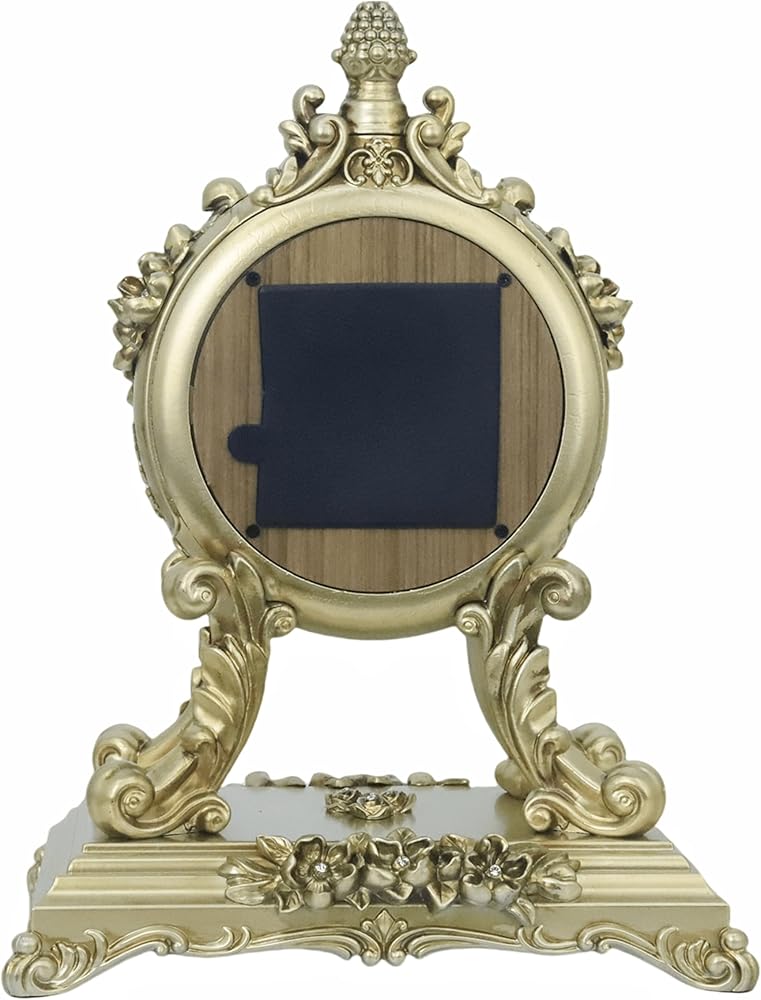 ساعة على الطراز الباروكي: تتميز هذه الساعة العتيقة بتصميم باروكي مذهل مع زخارف معقدة وزخارف نباتية، مثالية لإضافة لمسة من الأناقة العتيقة إلى ديكور منزلك. تعمل الساعة ببطارية AA واحدة (غير متضمنة) الحجم: 11*6*15 بوصة، 4 رطل