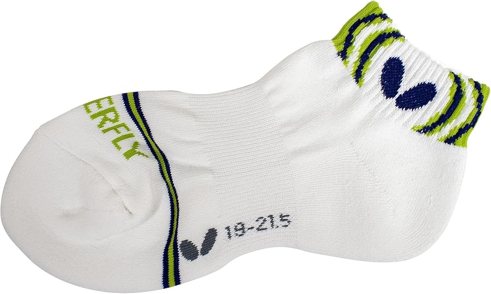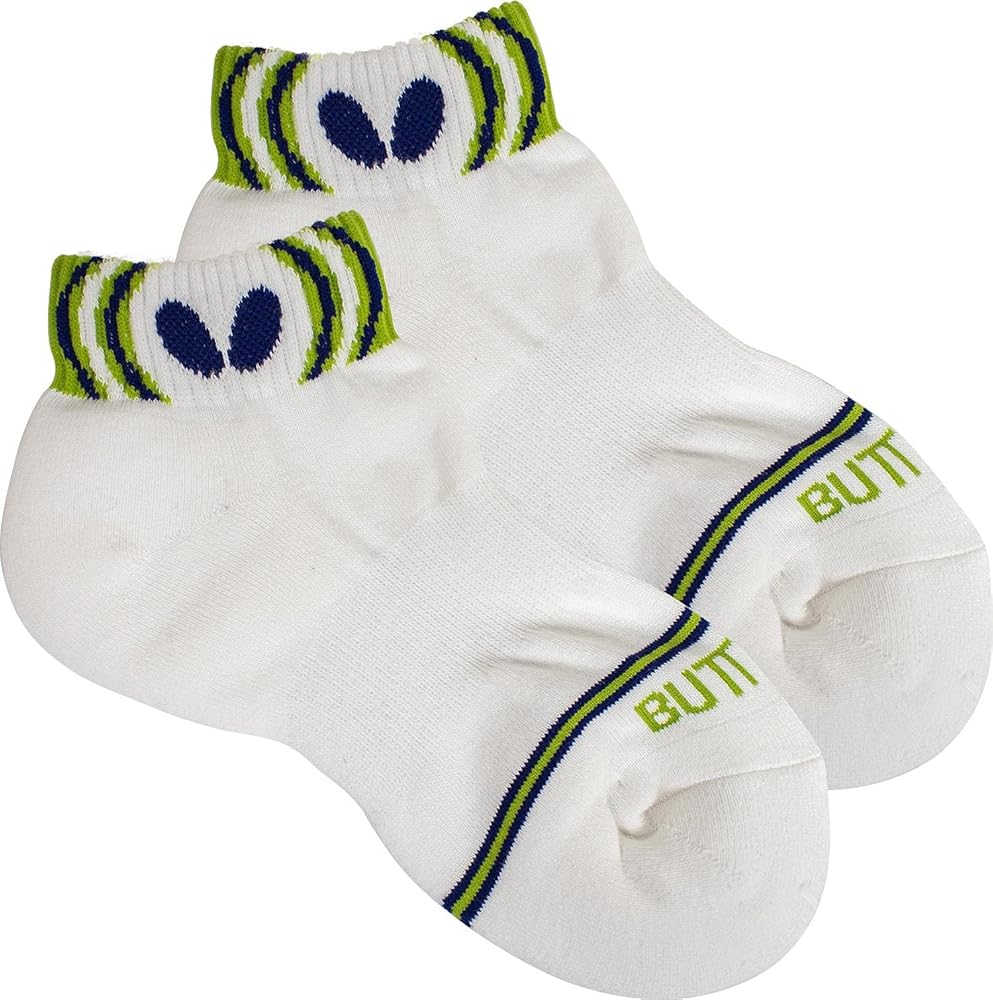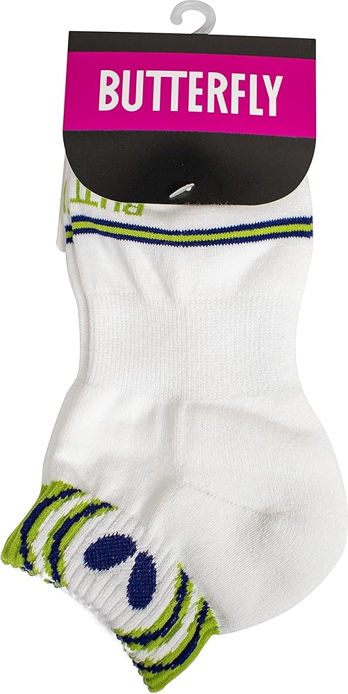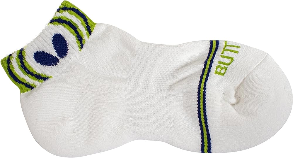 Butterfly Lasnel socks are high-quality, sweat absorbing, quick drying, athletic, table tennis socks for men or women. The Lasnel socks were designed to help keep your feet comfortable and dry. Developed by Butterfly specifically for table tennis these athletic socks are also ideal for training, running, jogging, other sport activities and casual wear. The Lasnel socks are constructed with a ribbed top and a center band for arch support and to help keep the sock in place These performance socks also feature a cushioned heel and a reinforced toe area. Butterfly Lasnel socks are made with cotton/acrylic/other material and feature two contrasting colors with a bracket pattern. The Butterfly “Wings” logo is on the ankle band in the main color and the socks also feature the “BUTTERFLY” logo in black on the top of the foot. Butterfly produces high performance table tennis equipment of high quality in order to satisfy the requirements of all players. The Butterfly Lasnel socks are offered in Green, Orange, Red, Rose and Sky Blue colors and sizes include: Small (4.0 - 6.5), Medium (7.0 - 9.0) and Large (9.5 - 11.0). Made in Japan.