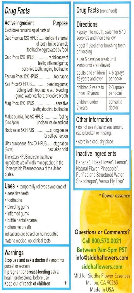 يساعد بخاخ سيدها ريميديز للأسنان واللثة على تخفيف الضغط الذي يساهم في حساسية الأسنان وأوجاع الأسنان ونزيف اللثة والتهاب اللثة وهشاشة المينا والنفس الكريه.